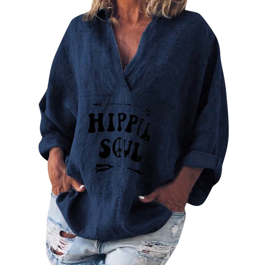 Plus Size 5XL Womens T Shirt V Neck Long Sleeve Cotton Linen Kaftan Ladies Baggy Tee Shirt Femme Tops Loose Letter Print Tshirt