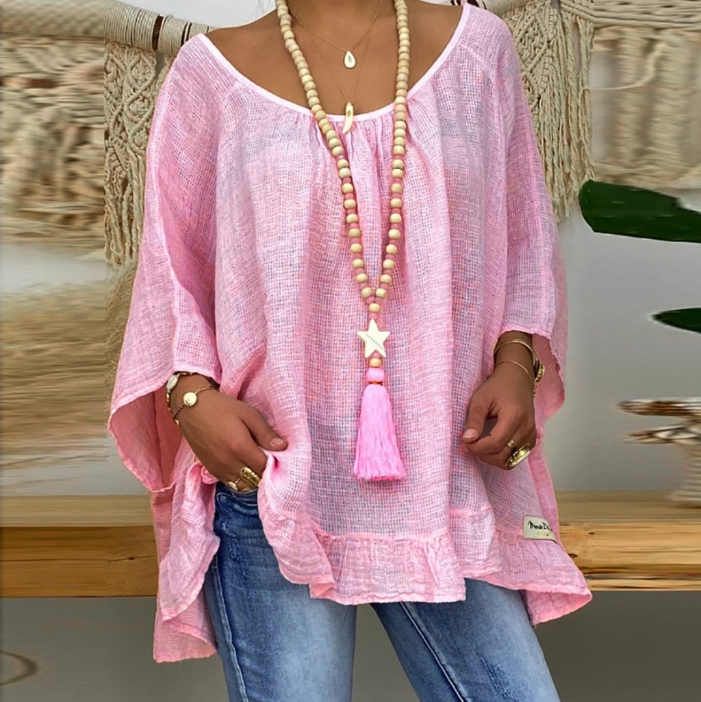 Plus Size Fashion Cotton Linen Blouse Shirt Solid Loose O-Neck Tops Casual Summer Ladies Female Women 3/4 Sleeve Blusas Pullover 915
