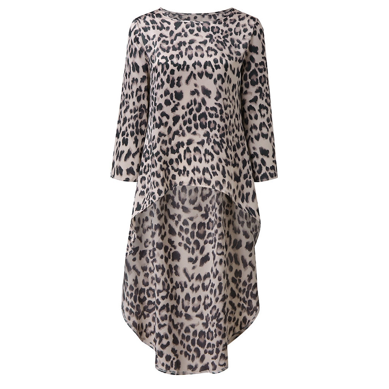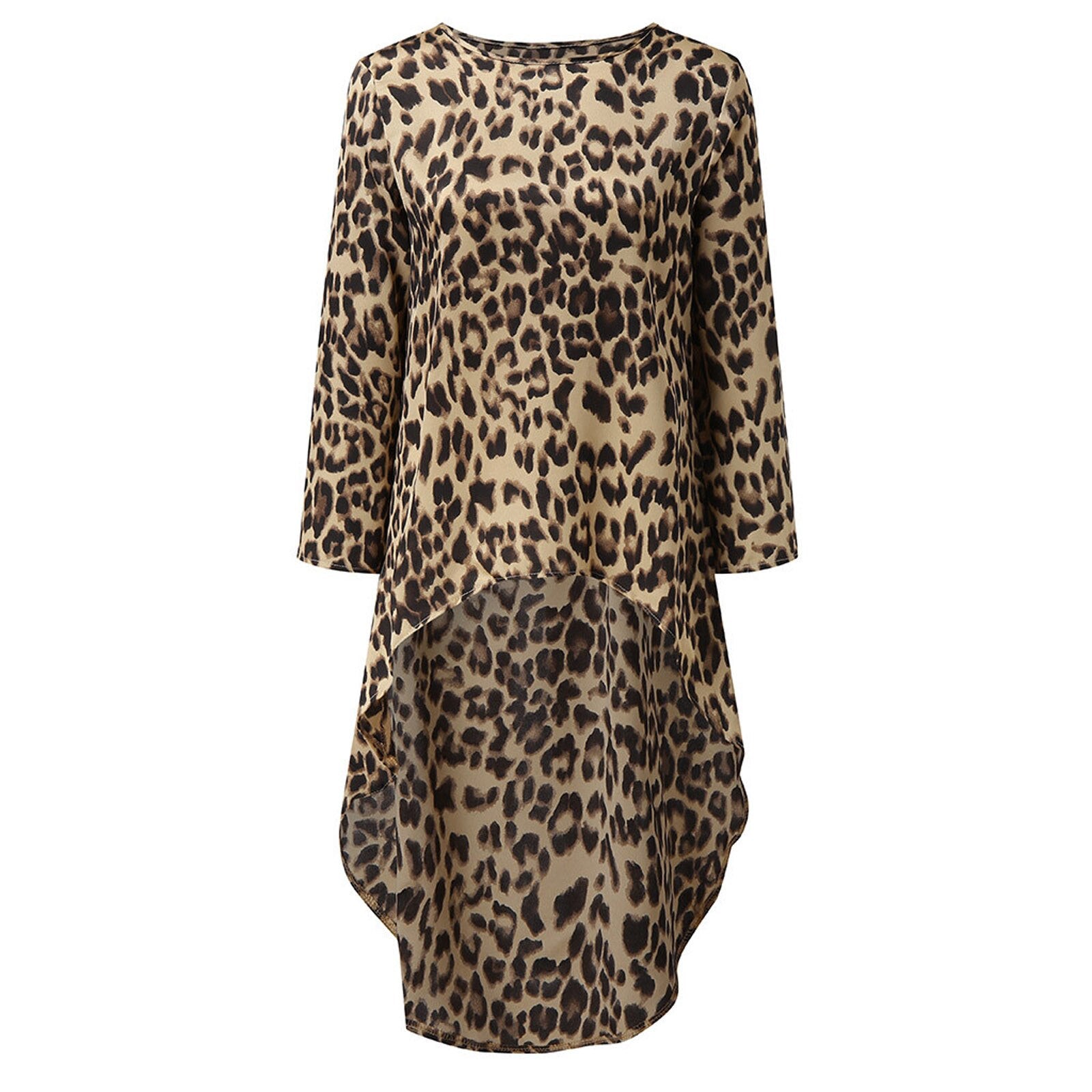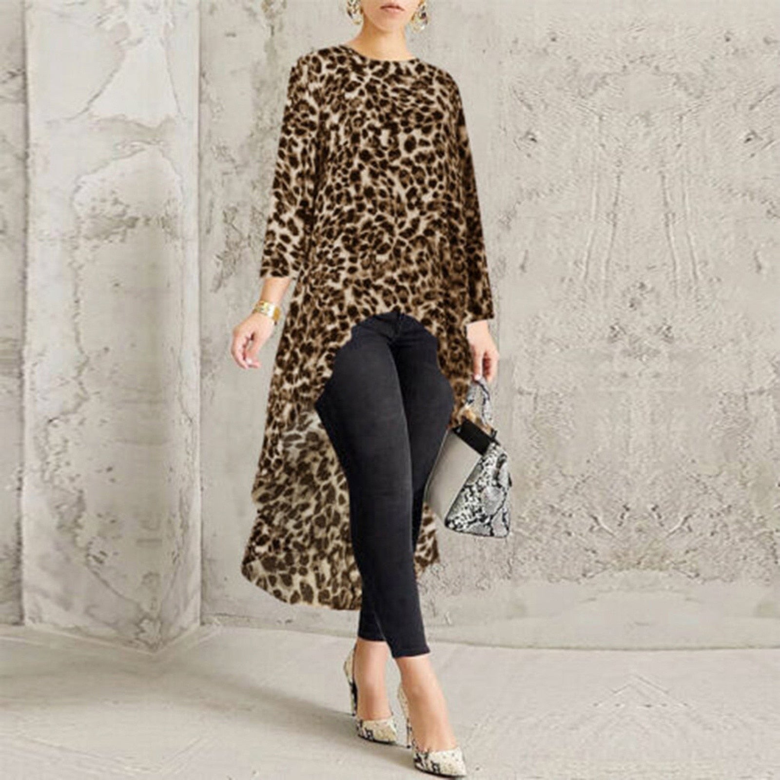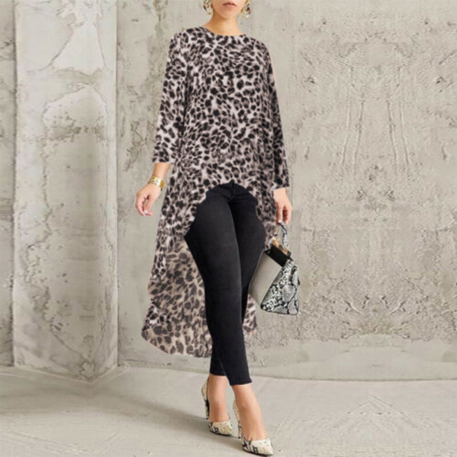 Plus Size Fashion High Low Leopard Blouse Shirt Loose Tops Casual Autumn Winter Ladies Female Women Long Sleeve Blusas Pullover
