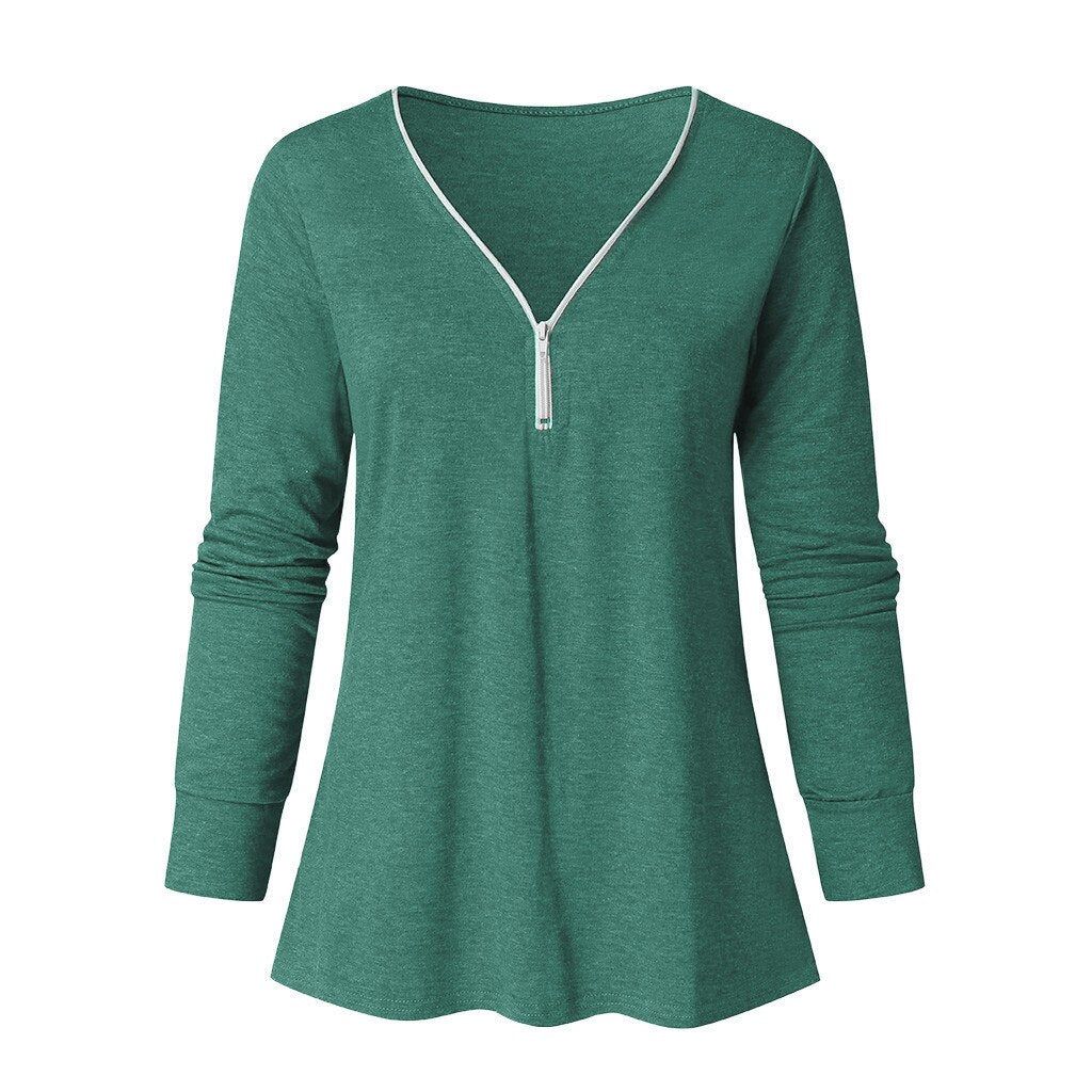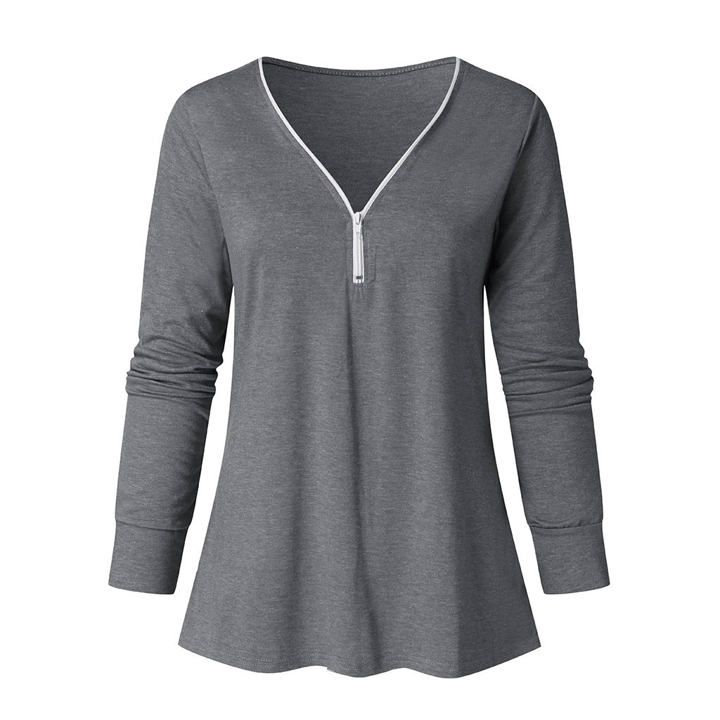 Plus Size Fashion Zipper Blouse Shirt Sexy V-Neck Tops Casual Autumn Winter Tops Ladies Female Women Long Sleeve Blusas Pullover
