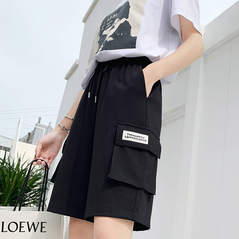Plus Size Shorts Women Cargo Short Pants Summer Sport Hot Shorts Belted Casual Loose High Waist Hip Hop Shorts With Pockets