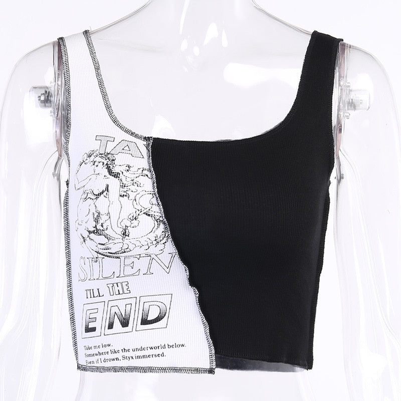 Punk Style Patchwork Tank Tops Aesthetic Letter And Graphic Print Women Crop Top Color Blocking Sleeveless Streetwear