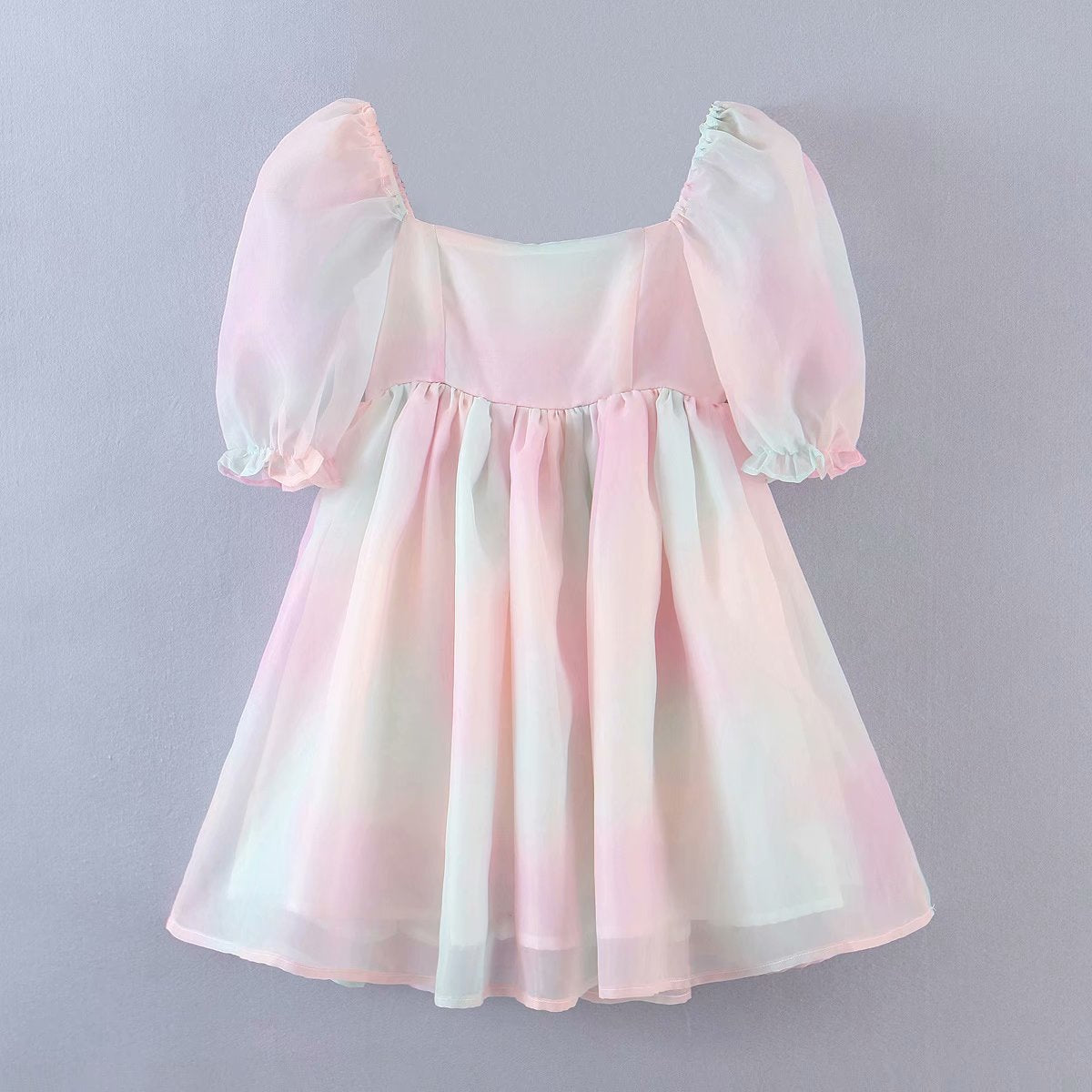 Rainbow Princess Dress For Women Puff Sleeve Square Collar Office Lady Elegant Lovely Fashion Personality Birthday Mini Dress