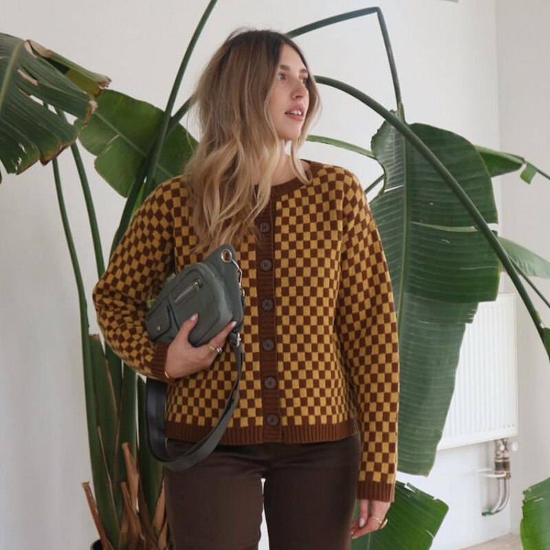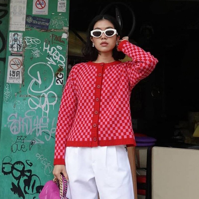 Retro Plaid Print Y2K Grunge Cardigans Autumn Button Up Fairycore Sweaters Winter Aesthetic 2000s Chic Cute Coats Cuteandpsycho