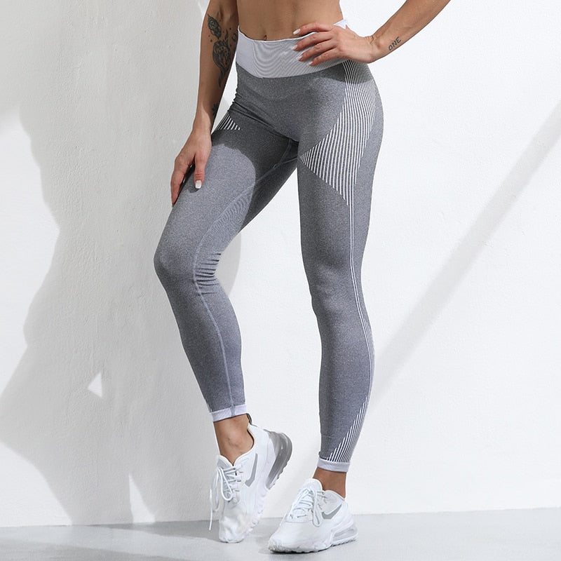 Sexy Seamless Finess Bubble Butt Leggings Women High Waist Sports Leggings Push Up Sportswear Stripes Legging