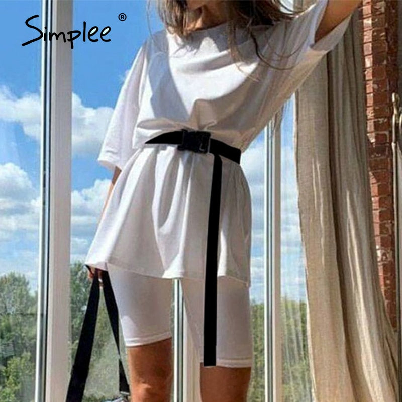 Simplee Casual Solid Outfits Women's Two Piece Suit with Belt Home Loose Sports Tracksuits Fashion Bicycle Summer Hot Suit 2020