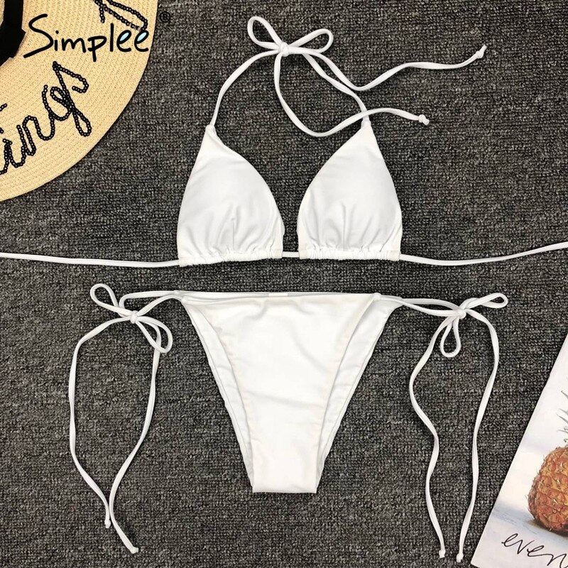 Simplee Halter bikini 2019 micro String sexy bathing suit women bathers Triangle thong swimsuit female neon swimwear biquini