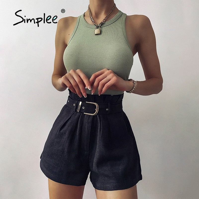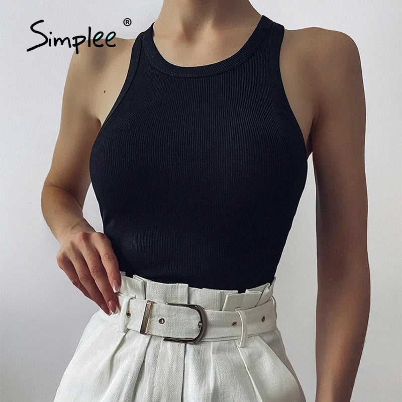 Simplee Highstreet summer o-neck solid cotton vest women Sexy basic ladies office tank top Fashion sleeveless club short tops
