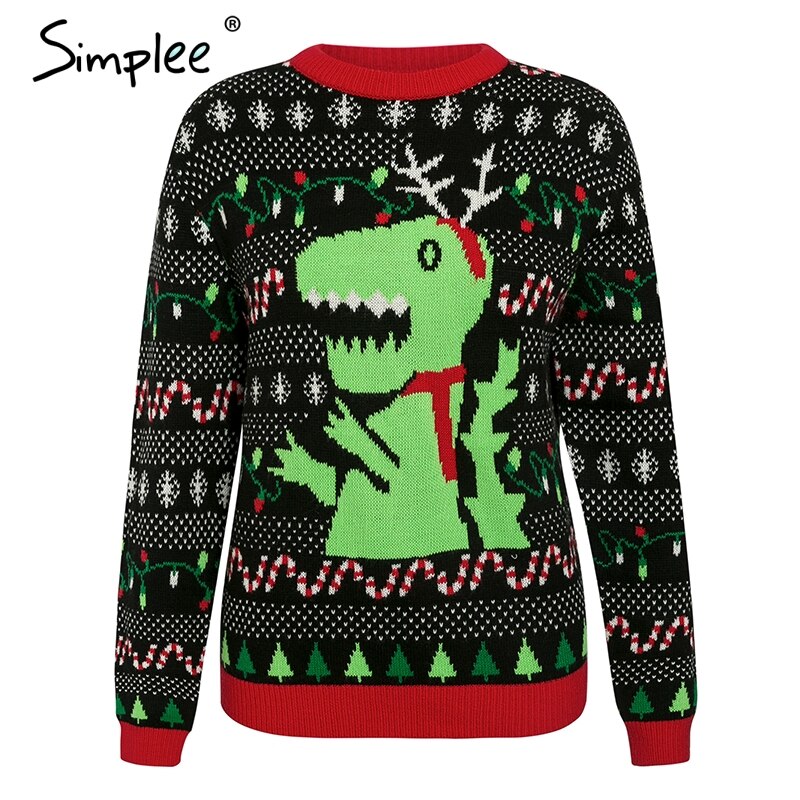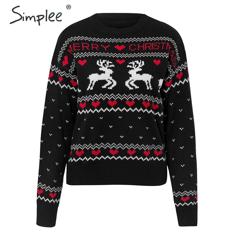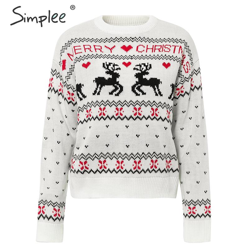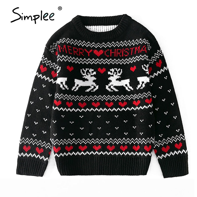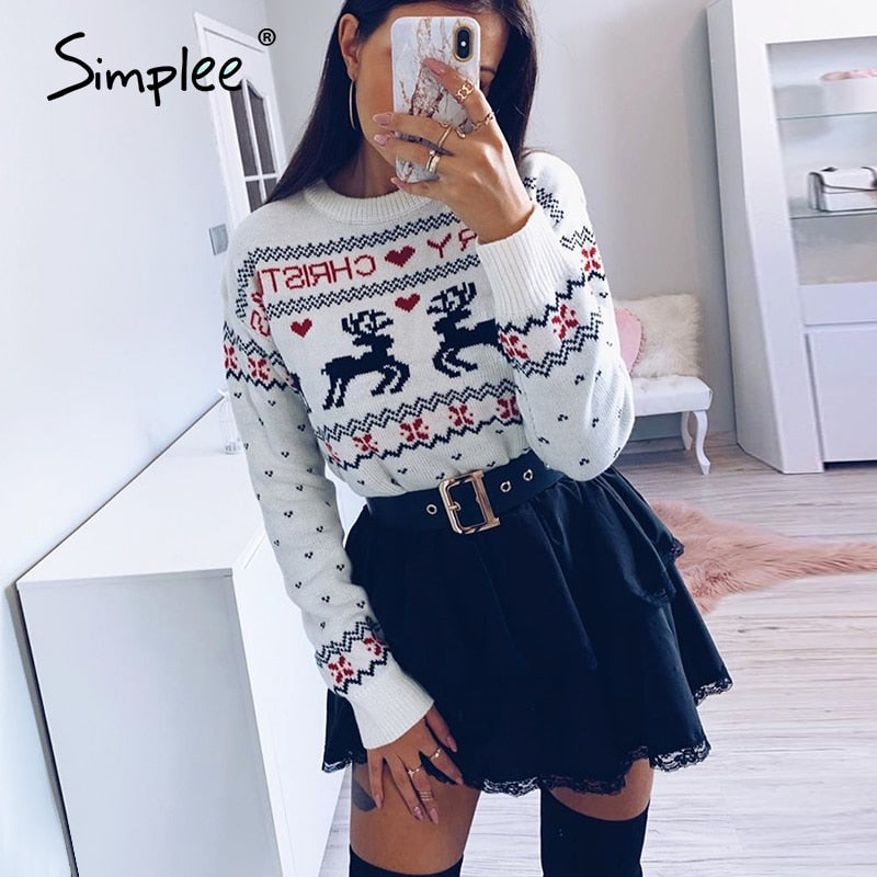 Simplee O-neck Fashion Christmas sweaters women long sleeve Autumn winter deer print knitted female pullover Chic ladies sweater