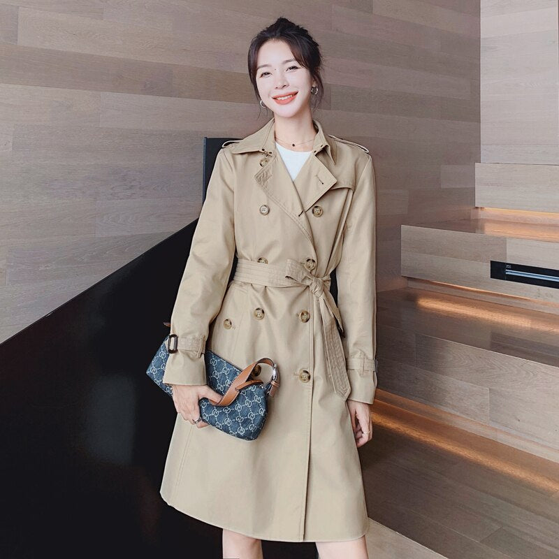 Slim Women Trench Coat Double-Breasted Long Windbreaker Office Lady Duster Coat with Belt Spring Autumn Outerwear Female Clothes