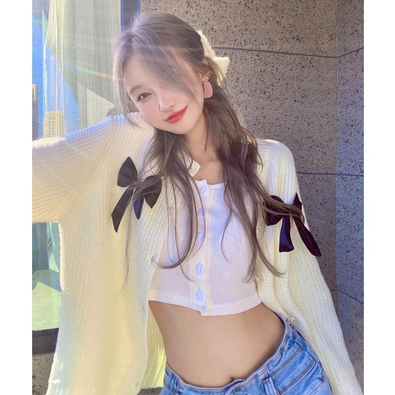 Solid Cardigan Women Bow Temperament Loose Trendy Gentle Sweet Girls Knitwear Soft Female Sweaters Teenagers Ulzzang 2021 Newest