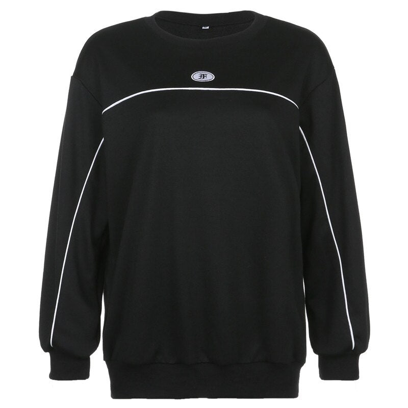 Streetwear Letter Embroidery Oversized Sweatshirts Women Autumn Loose Harajuku Shirts Basic Crew Neck Pullovers Cuteandpsycho