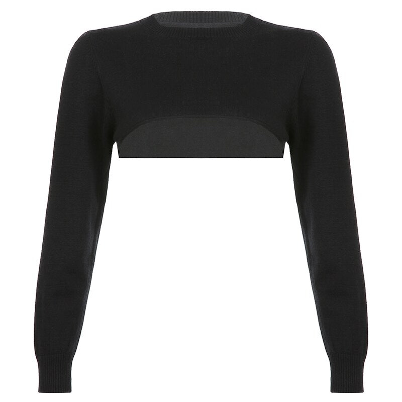 Streetwear Solid Women Y2K Cropped Sweaters Smock Autumn Cute Korean Knit Pullovers Aesthetic Vintage Chic Jumpers Cuteandpsycho