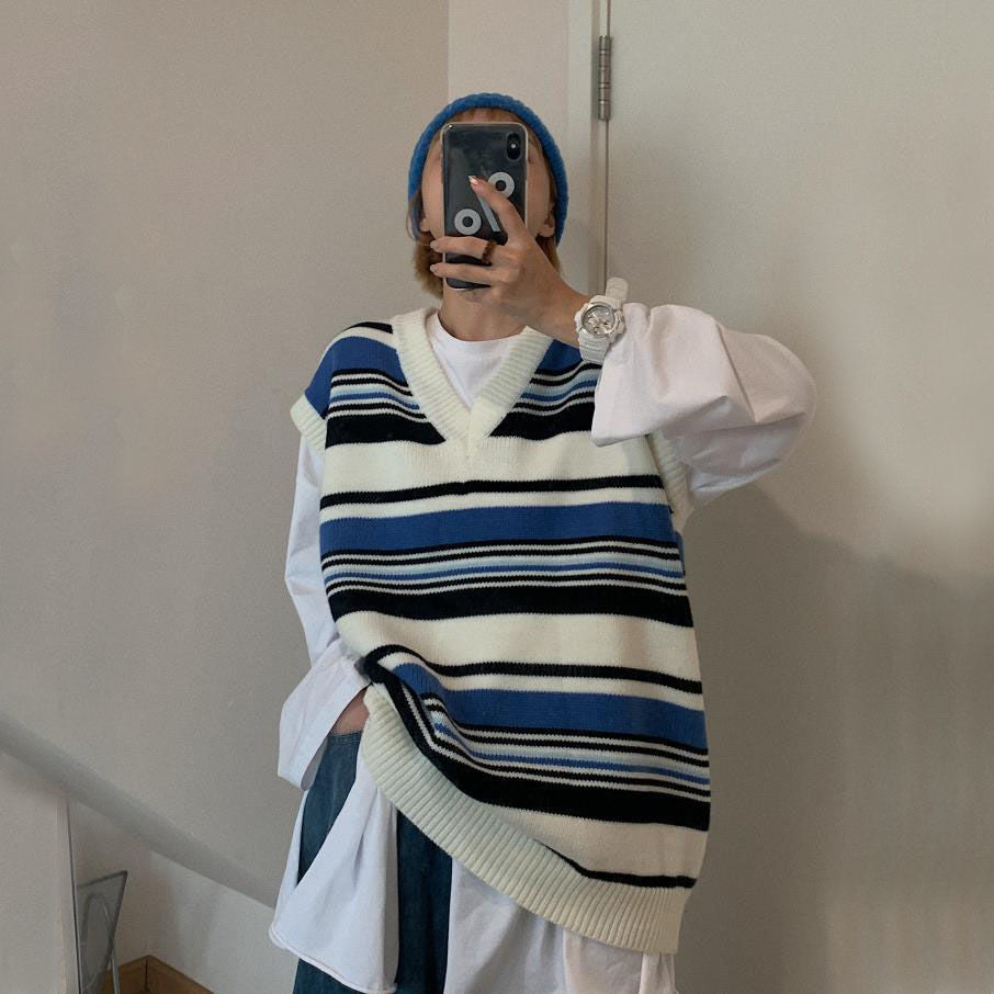 Striped Sweater Vest Women Retro Preppy Loose Unisex Soft Couple Fashion Leisure All-match Females Jumpers Korean Style Popular