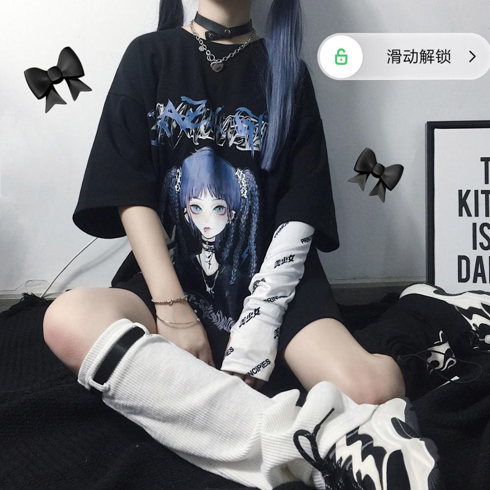 Summer Harajuku Cute Oversized T-Shirt Women Hip Hop Japan Cartoon Tshirt Streetwear Rock Tees Casual Fashion T Shirts Girl
