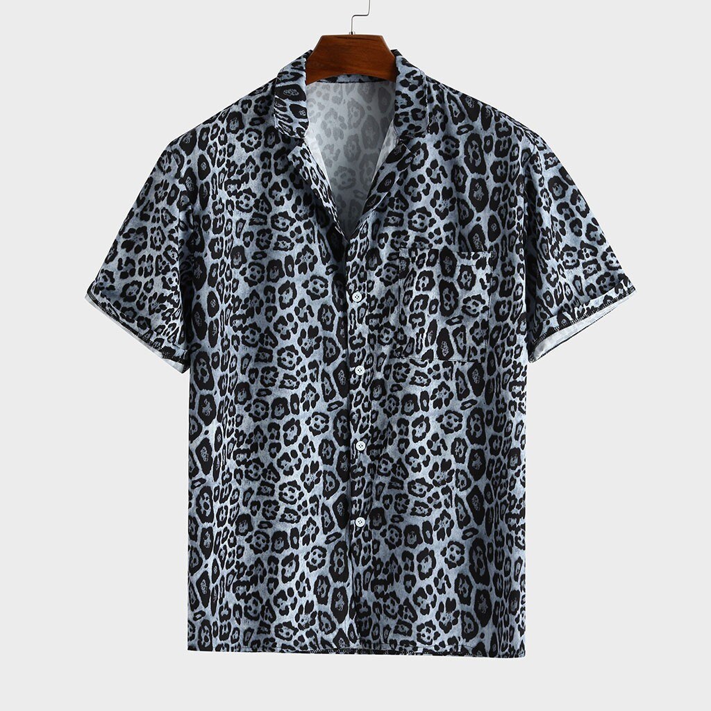 Summer Mens Shirt Top Casual Short Sleeve Hawaiian Shirts Turn Down Collar Leopard Print Shirt Men Dress Male Clothing Tops