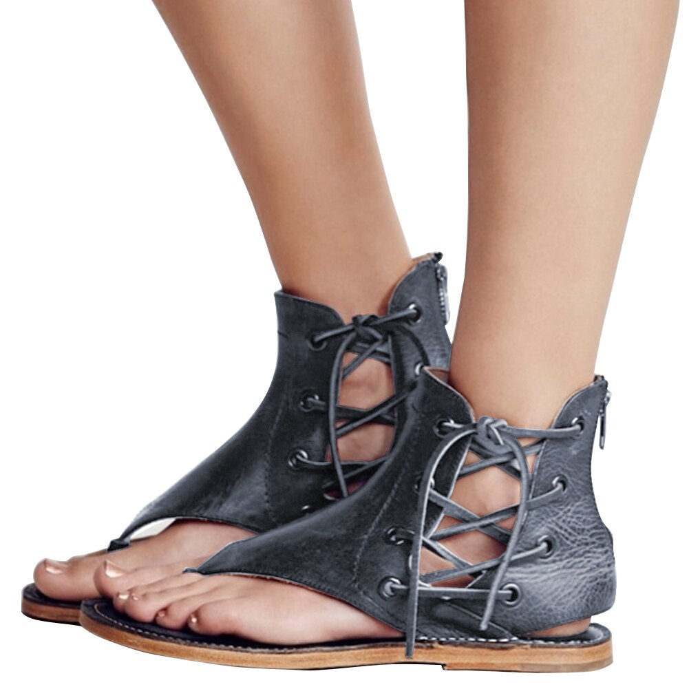 Summer Women Flats Sandals Fashion Strap Leopard PU Leather Bohemia Shoes Casual Open Toe Roman Gladiator Flip Flops Sandals