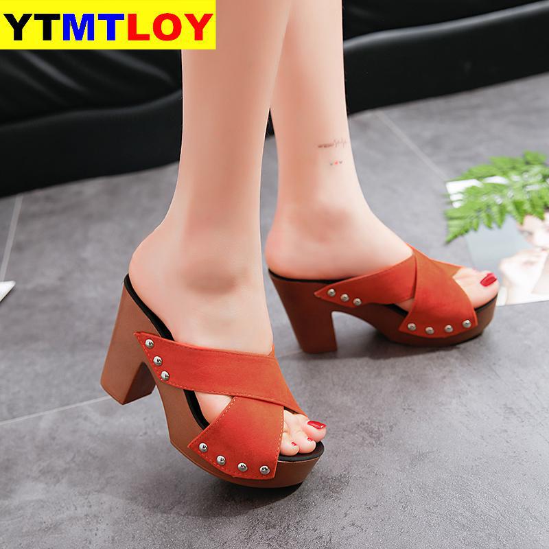 Summer Women Sandals Square High Heel Platform Flock Casual Rivet Pumps Peep Toe Female Elegant Ladies Shoes Zapatos De Mujer