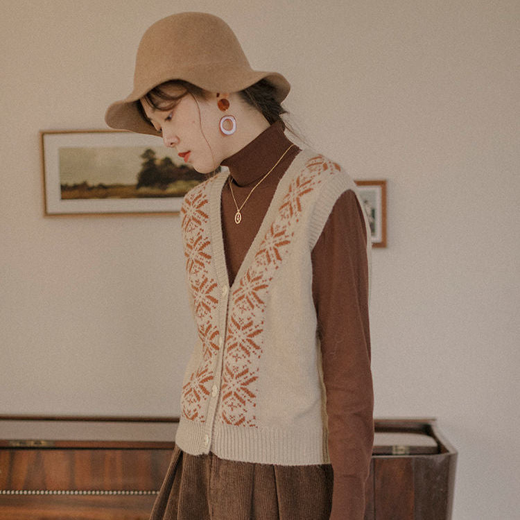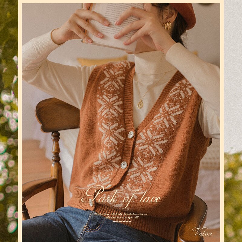 Sweater Vest Women Vintage Fashion Streetwear All-match Chic Printed Autumn Female Indie Clothes Aesthetic Single-breasted Loose