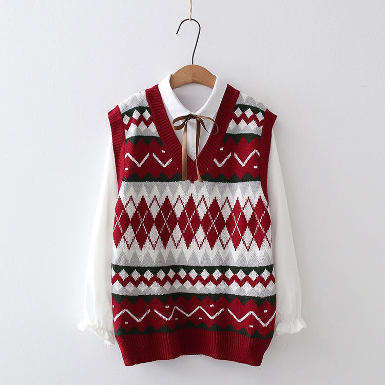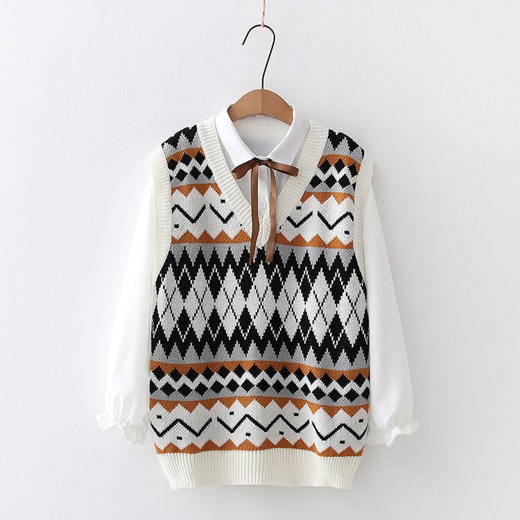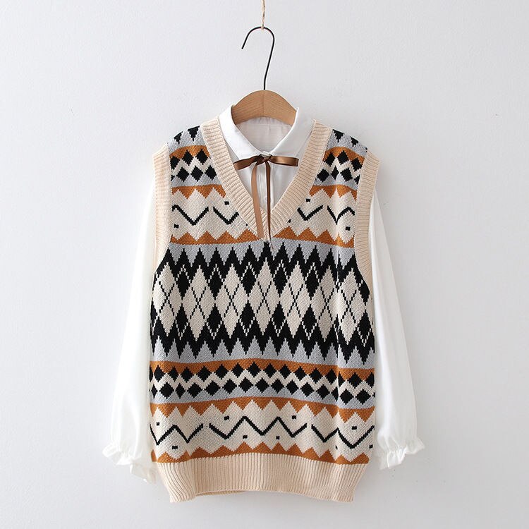 Sweater Vest Women Vintage Floral Vintage Japanese Style Students All-match Chic Fashion V-neck Loose Kawaii Sleeveless Sweaters