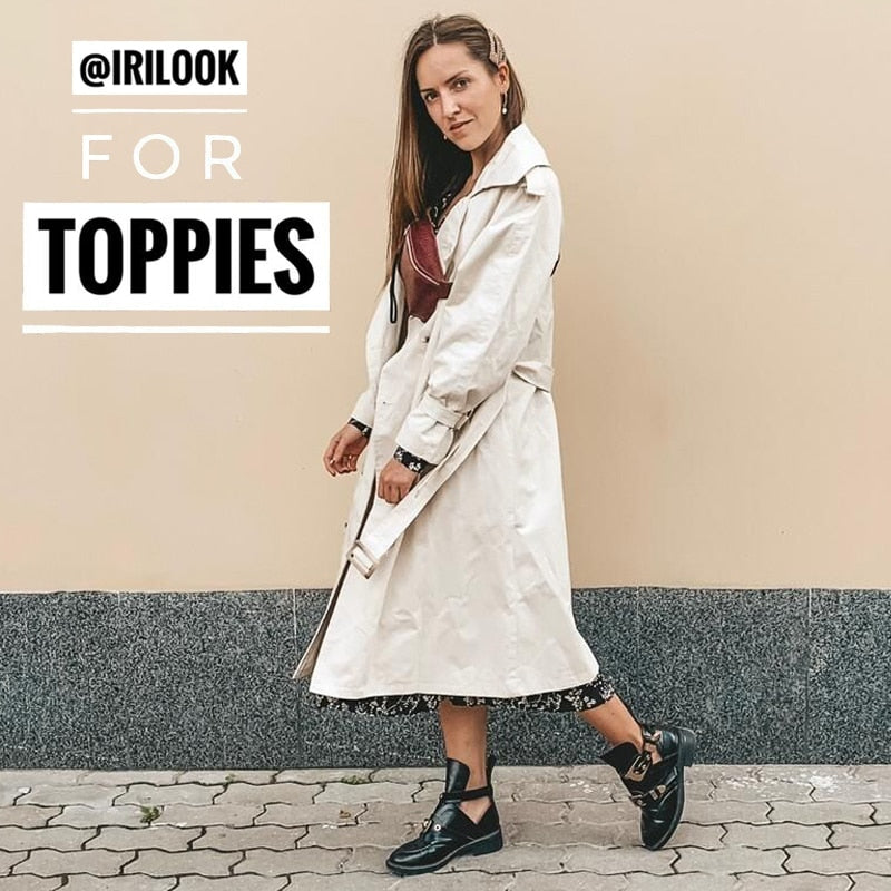 Toppies 2020 Spring Trench Coat for women Doble Breasted Long Coat korean style women Windbreaker Lapel Coat