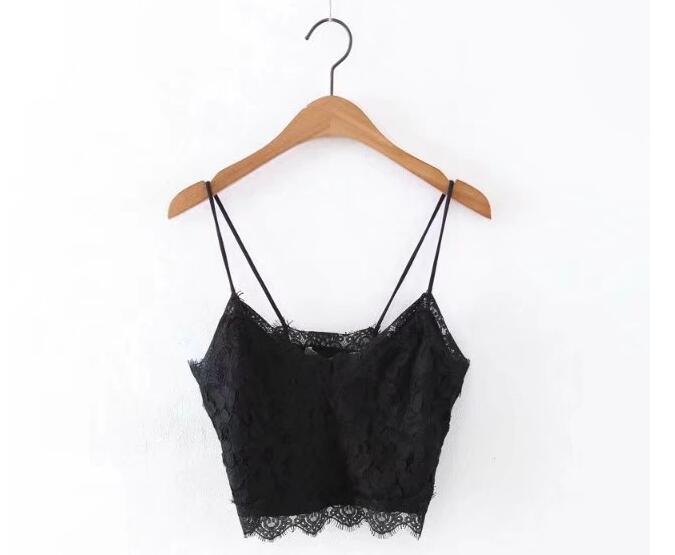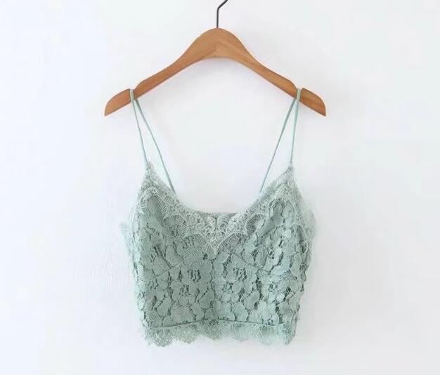 Toppies Women 2021 Summer Mint Green Solid Color Lace Crop Tops V-neck Sexy Strap Bra Camis