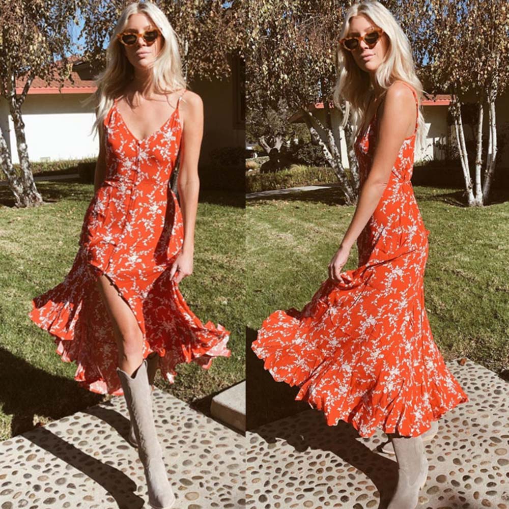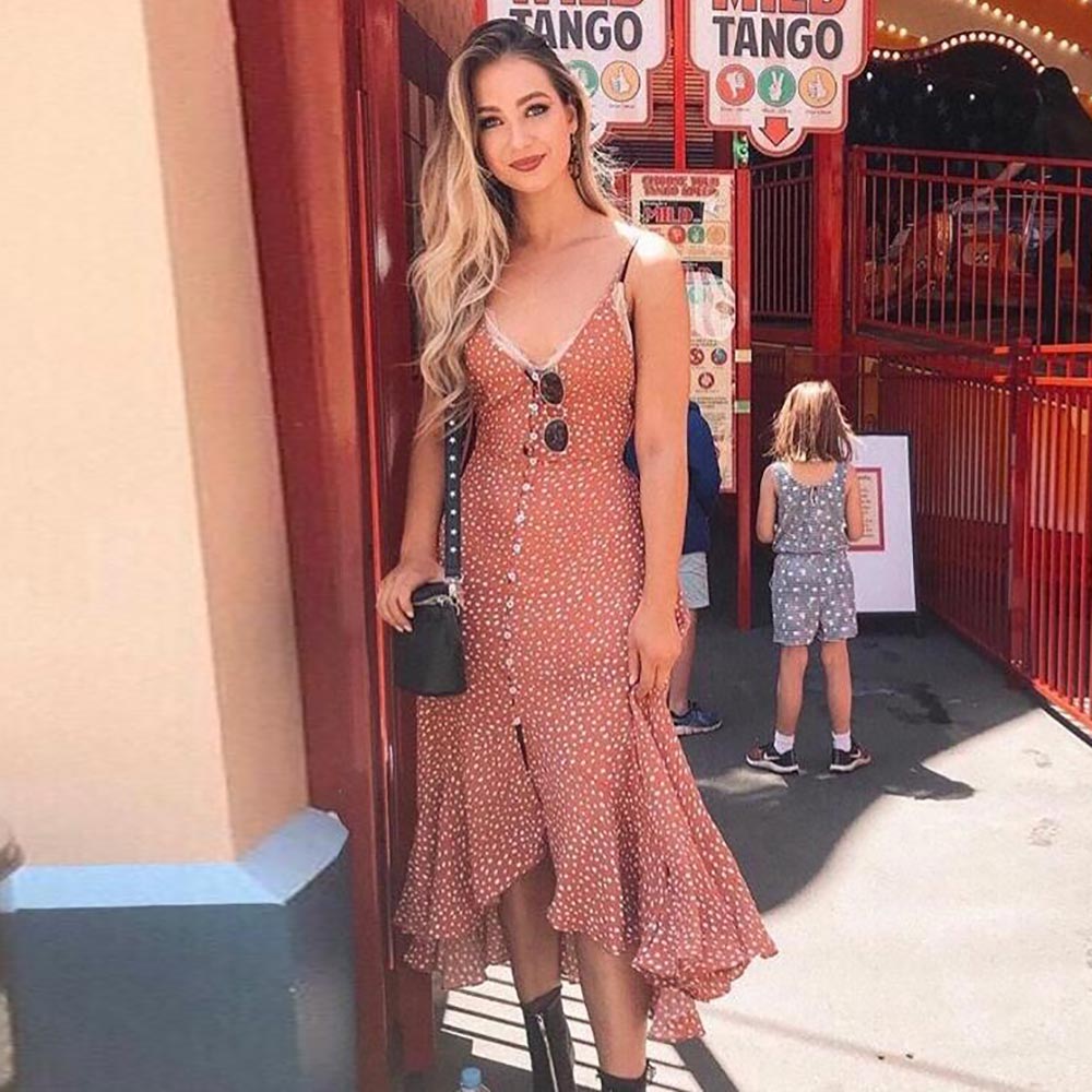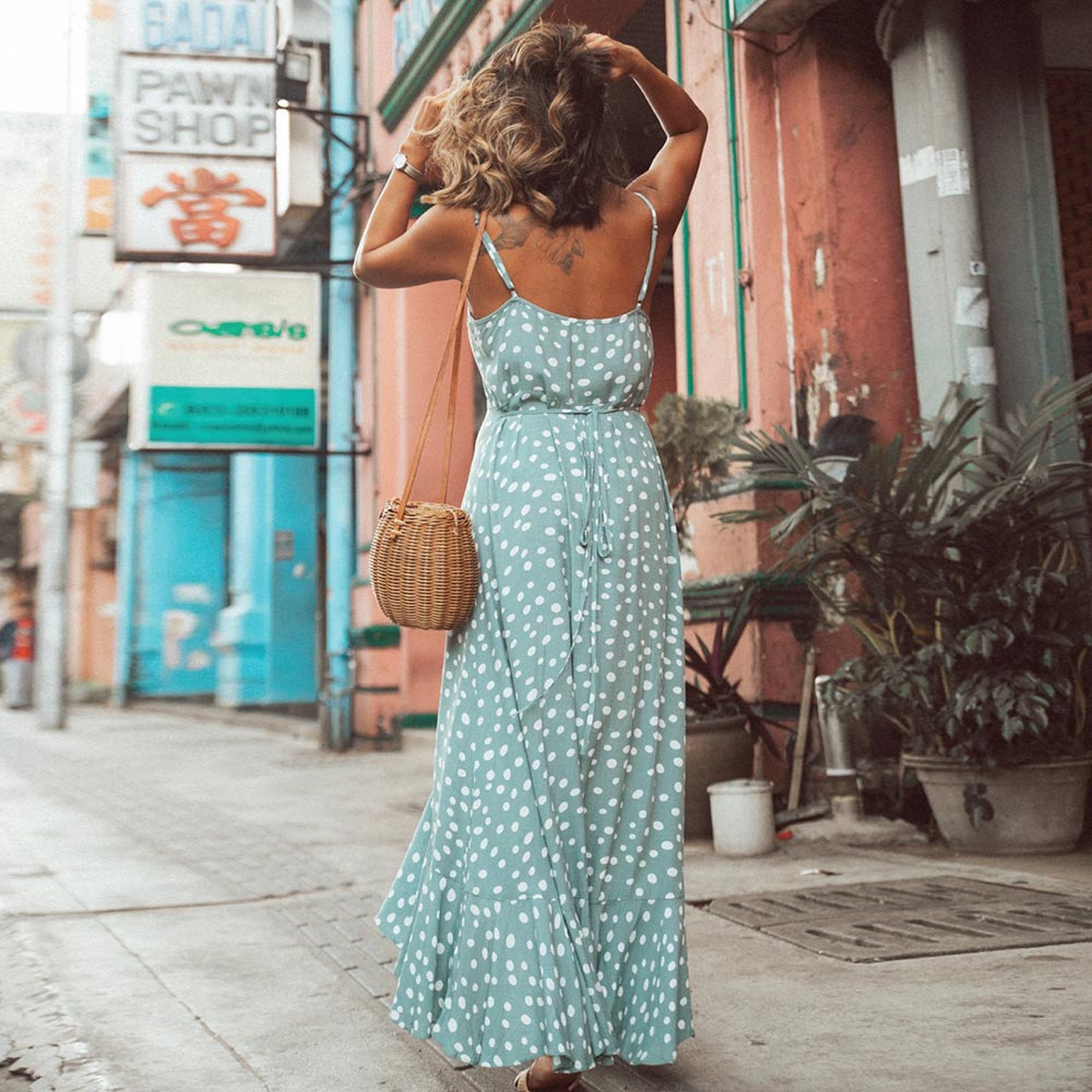 WildPinky Elegant Polka dot boho women midi summer dress Sexy v-neck strap button A-line dress Female print beach vestidos