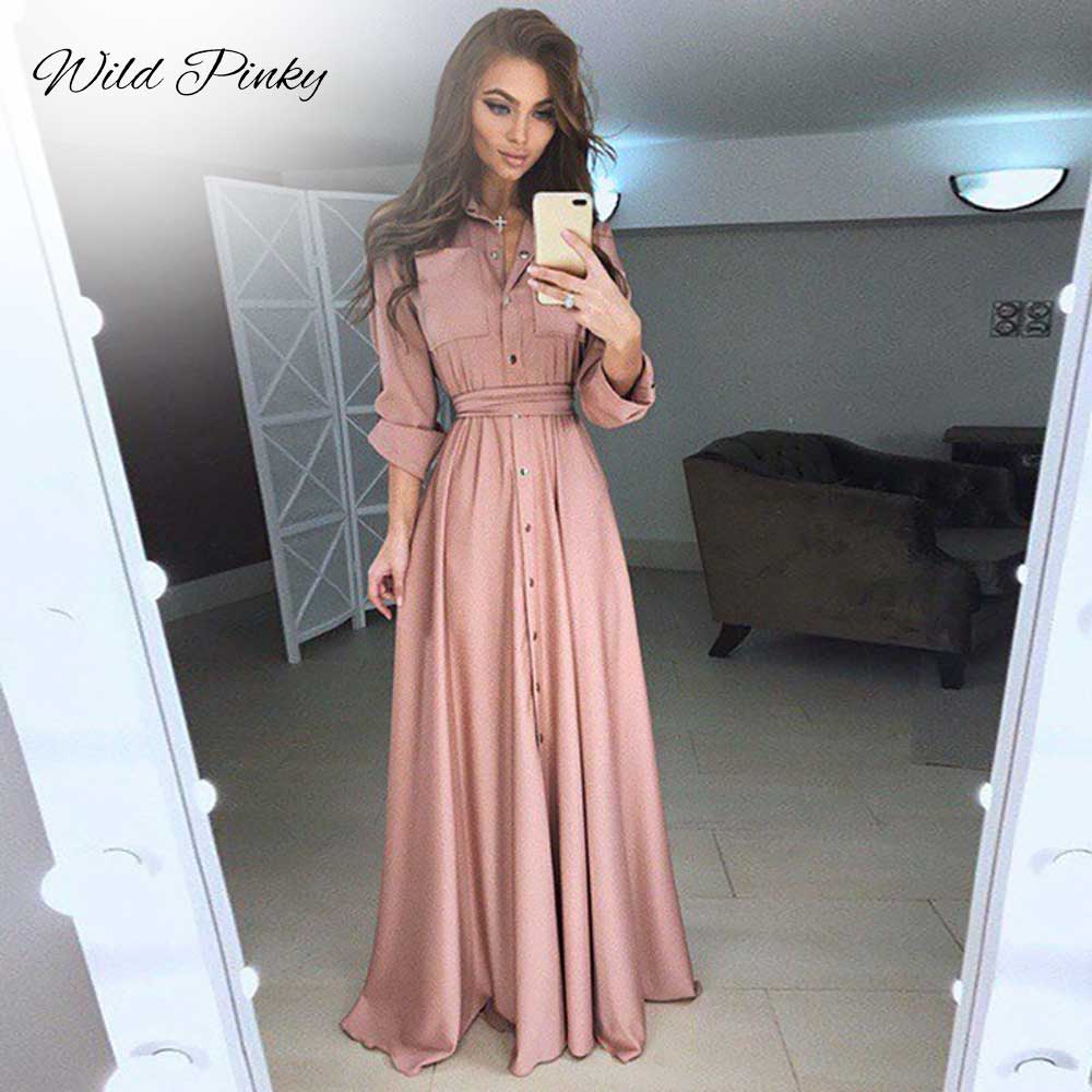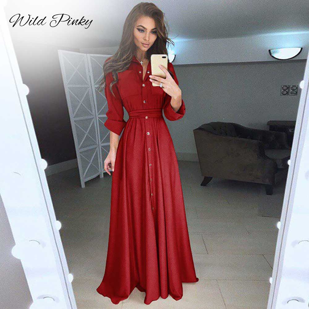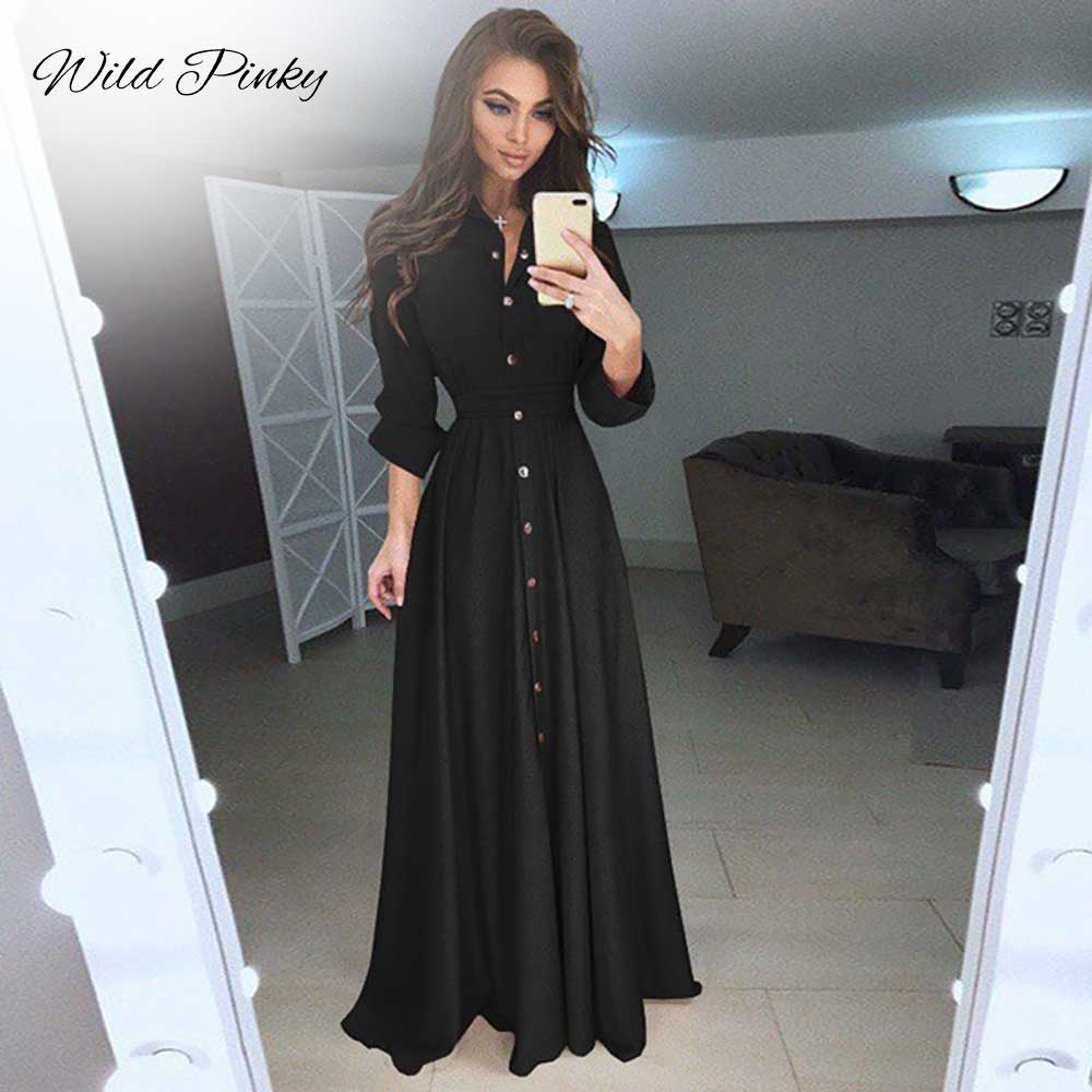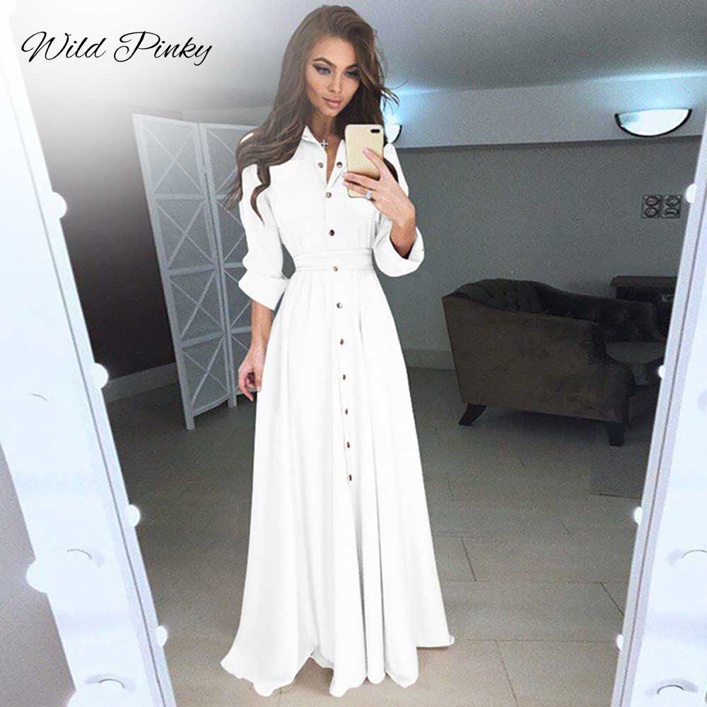 WildPinky Plus Size 5XL Dress Women Spring Summer Fashion Boho Casual Women Dress Long Sleeve Button Beach Maxi Dresses Vestidos