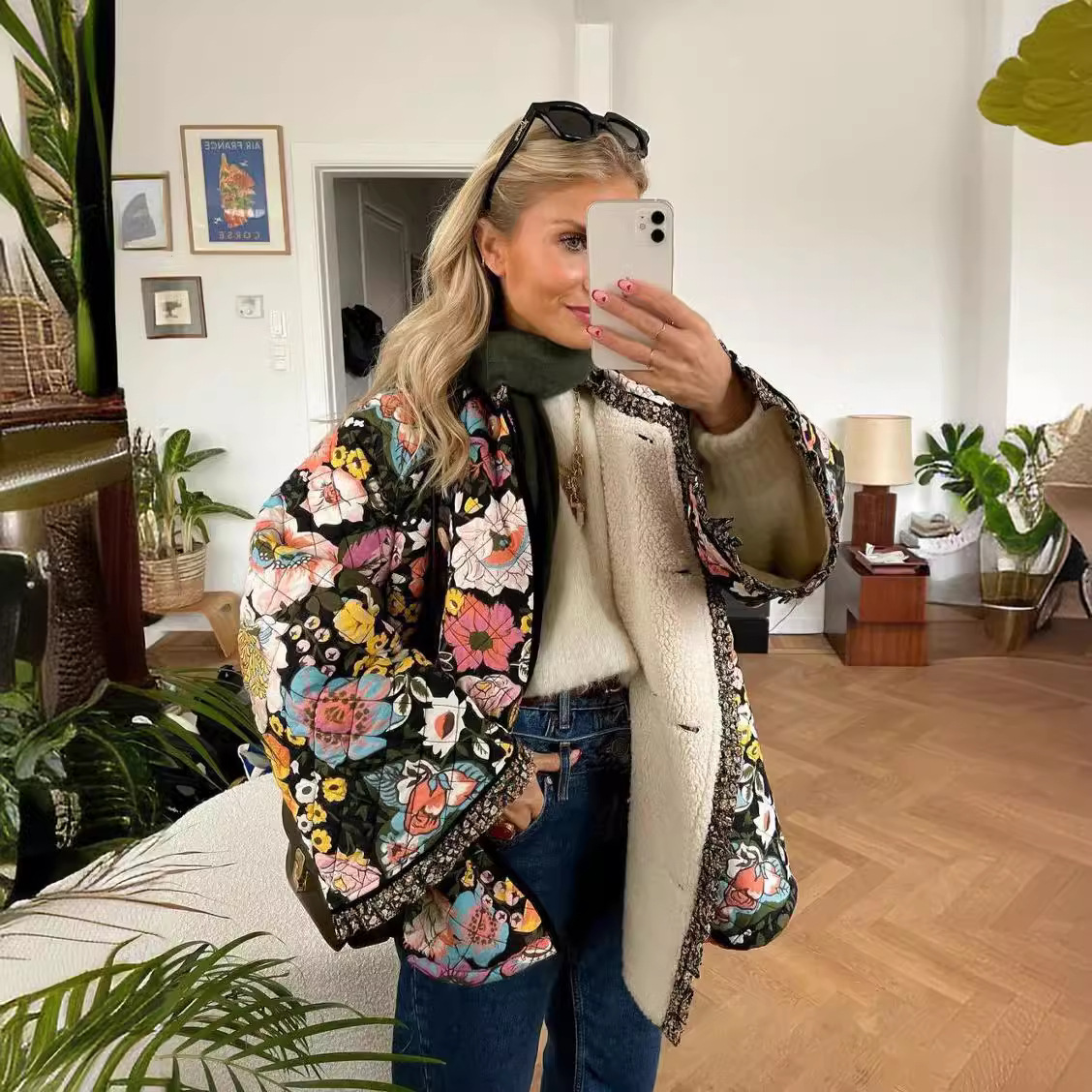 Woherb 2023 Autumn And Winter New Style Lace Trumpet Sleeve Padded Coat Print-Outfit Ideas