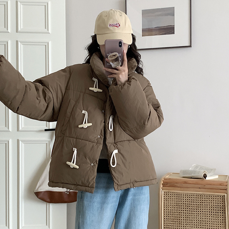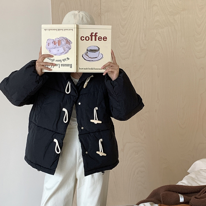 Woherb 2023 New Winter Down Cotton Jacket Women's Short Jacket Small Korean Horn Button Milk Fufu Cotton-Padded Jacket-Outfit Ideas