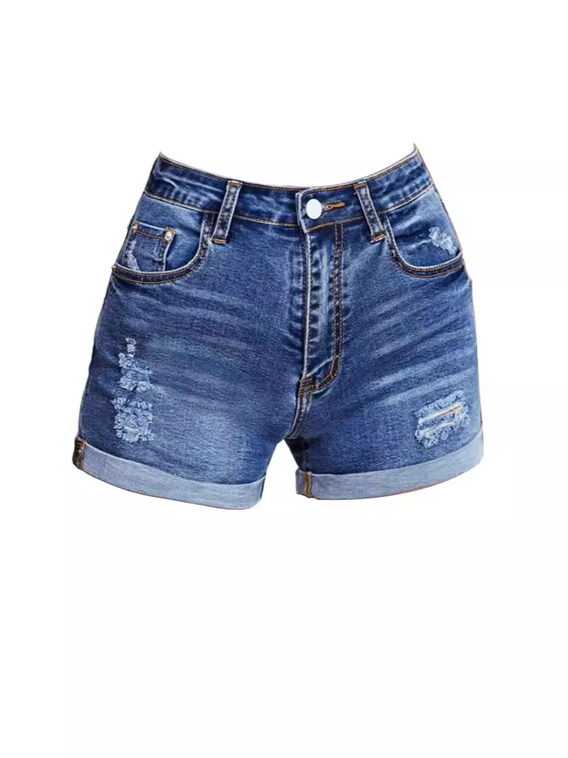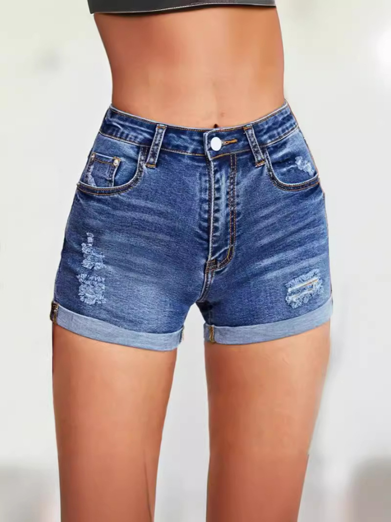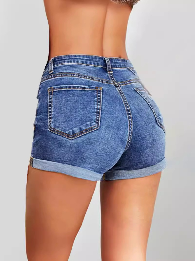 Woherb Broken Hole Flip Edge Stretch Denim Shorts Woman-Outfit Ideas
