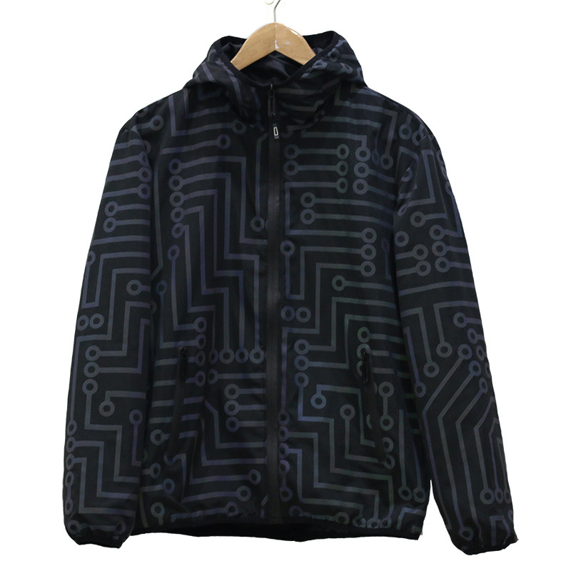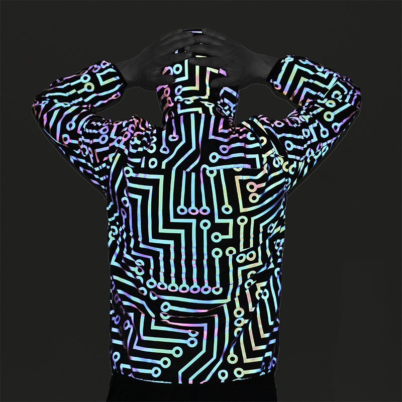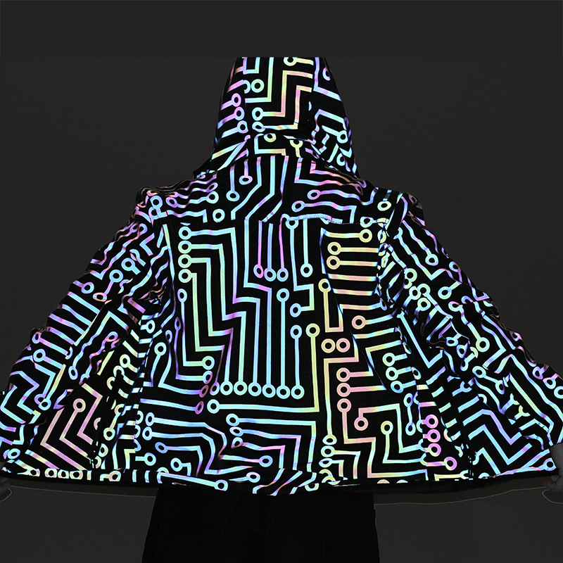 Woherb Circuit Grain Jacket Geometric Pattern Rainbow Color Reflective Jacket Hip Hop Mechanical Dance Dazzle Color Reflective Jacket-Outfit Ideas