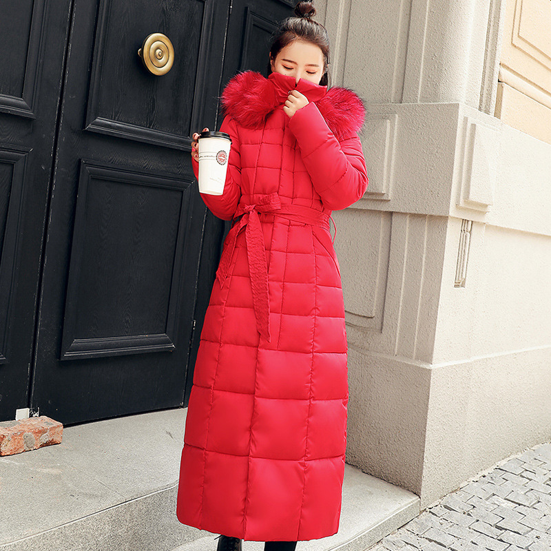 Woherb Cotton-Padded Clothes Female Over The Knee Long Style 2023 New Winter Dress Korean Version Slim Add Thick Big Wool Collar Large Size Down Cotton Jacket Cotton-Padded Jacket-Outfit Ideas