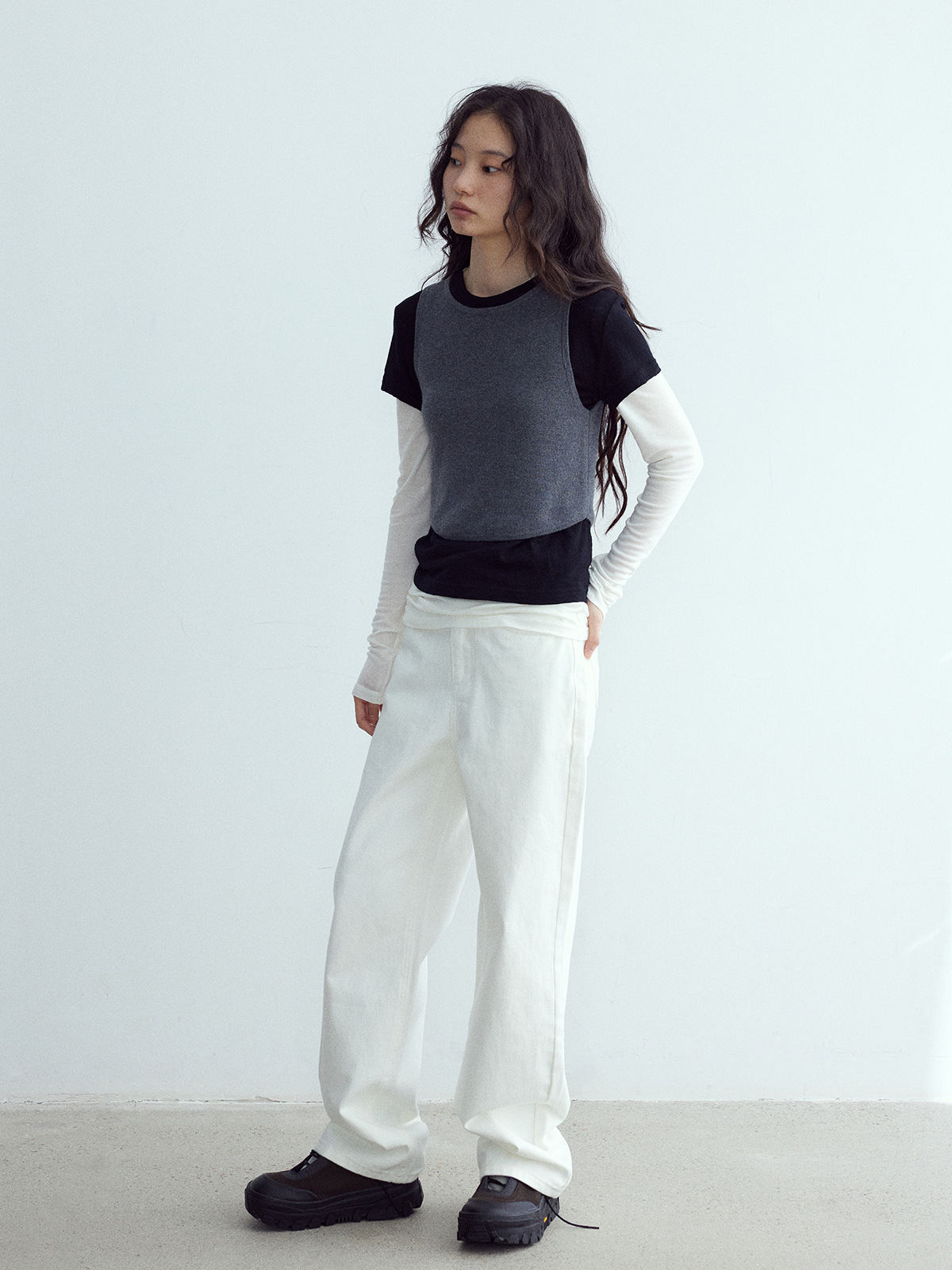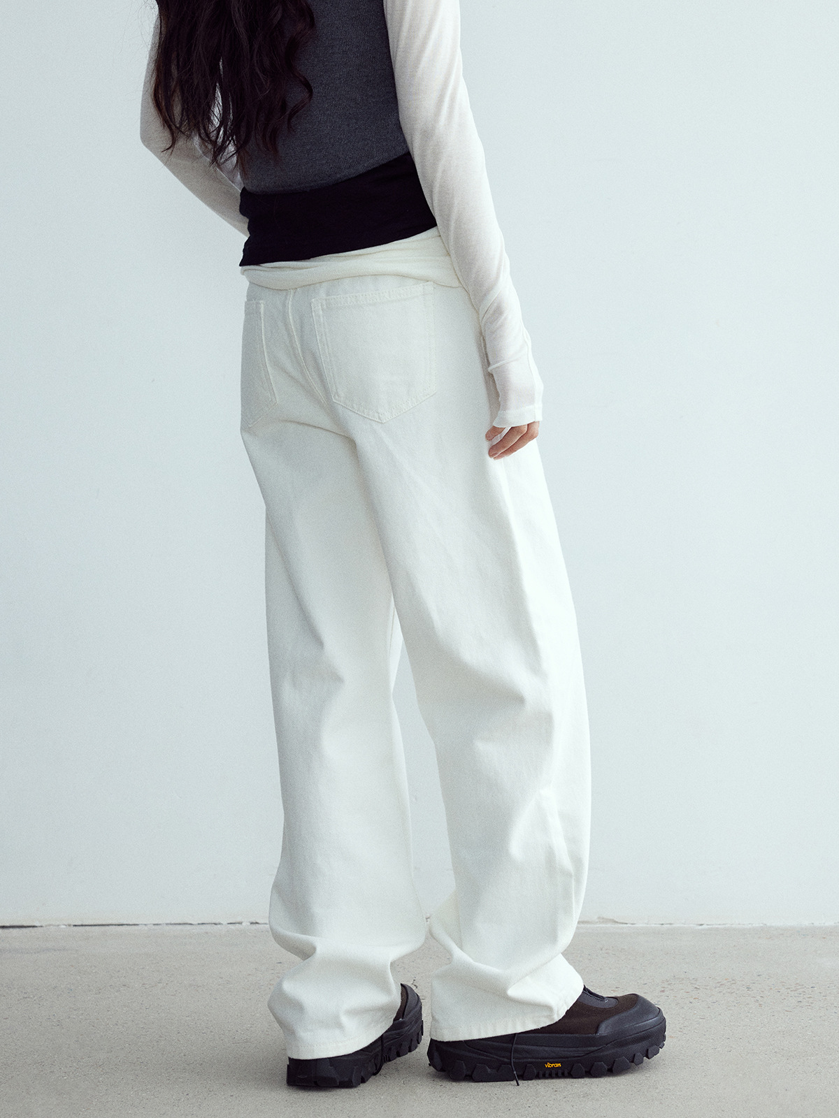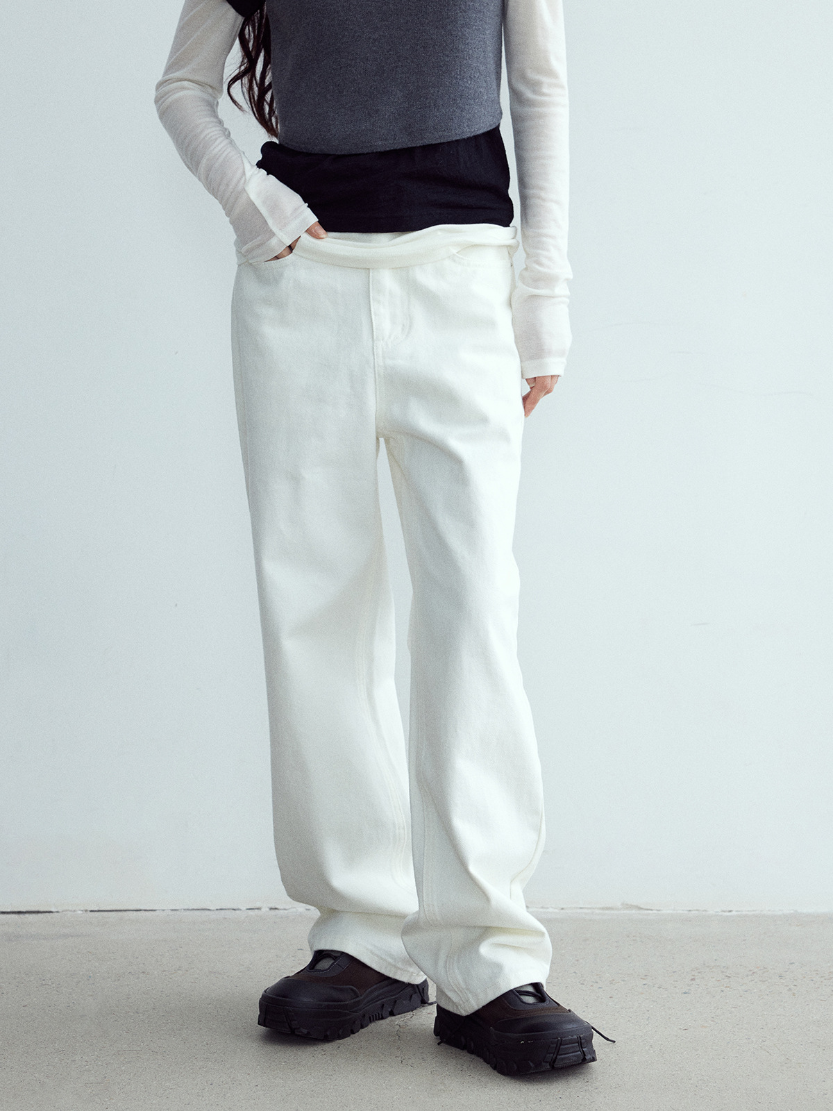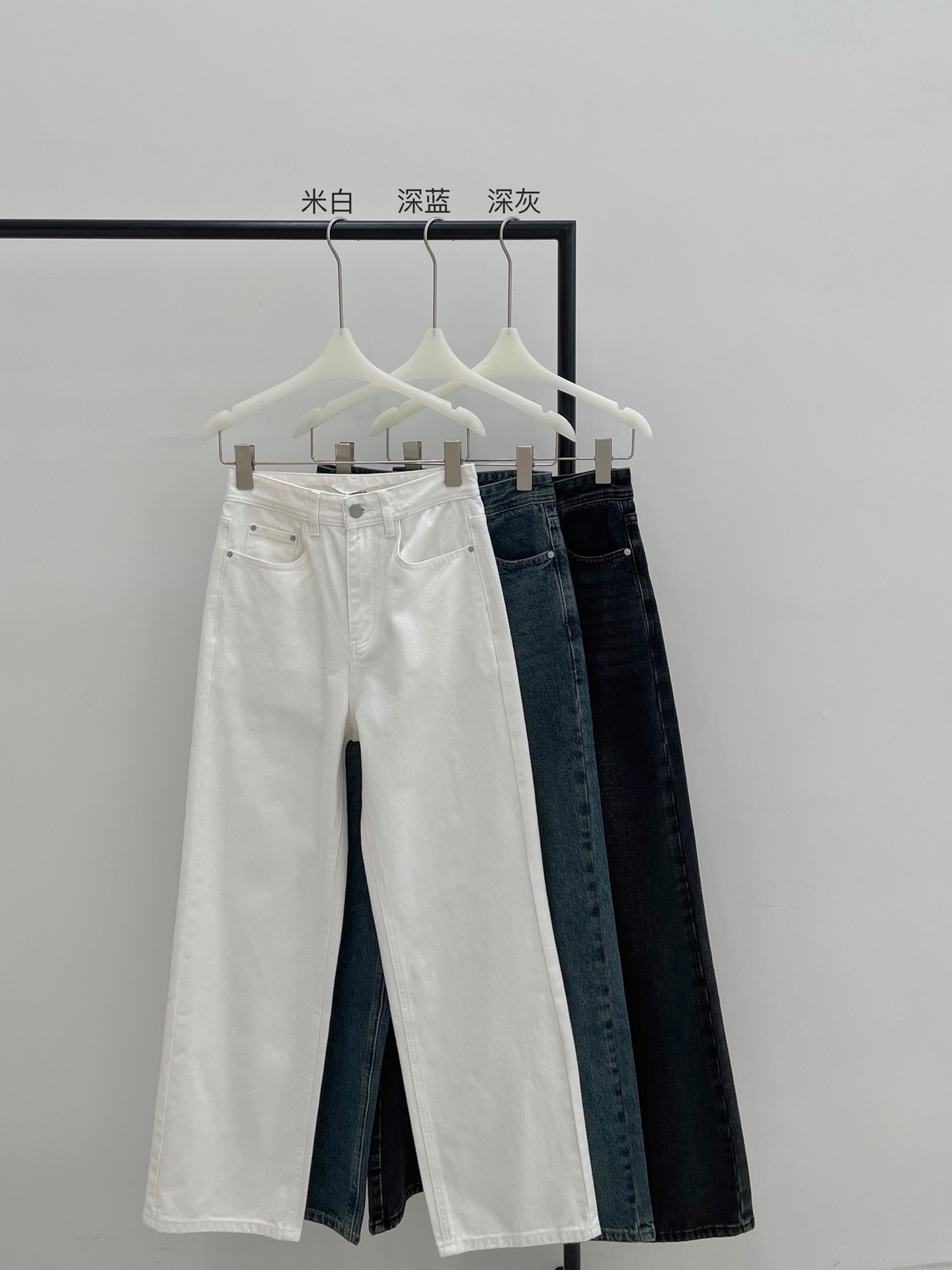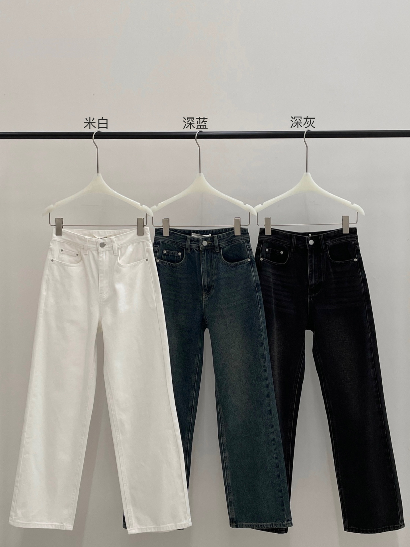 Woherb [Daihe] Autumn New Leisure High Waist Simple Retro Versatile Basic Long Straight Leg Jeans H7077-Outfit Ideas
