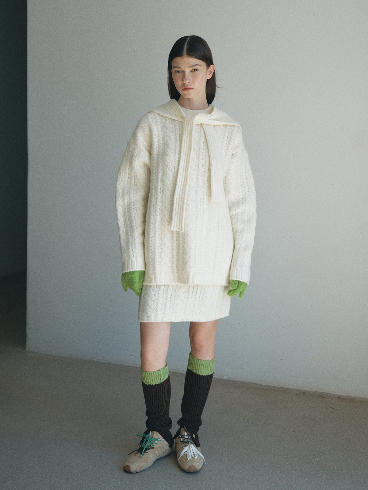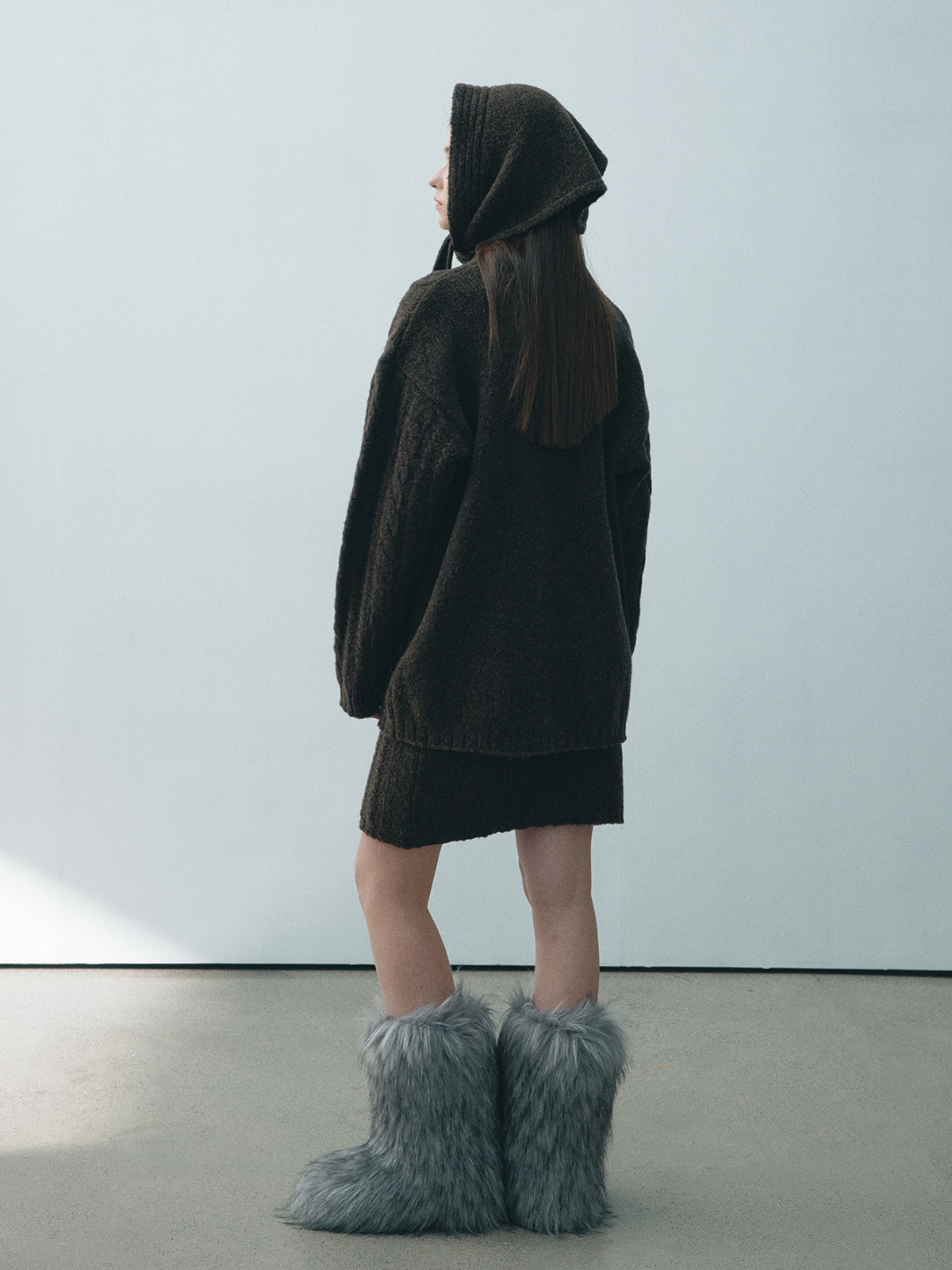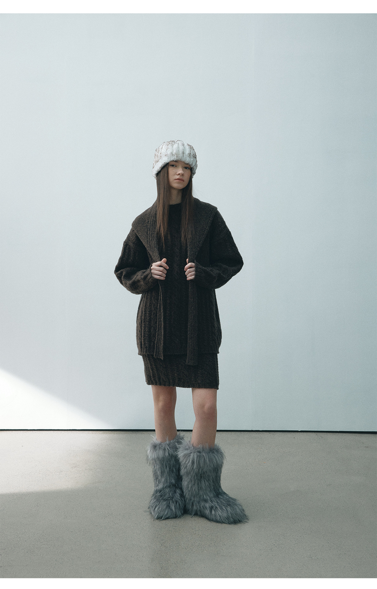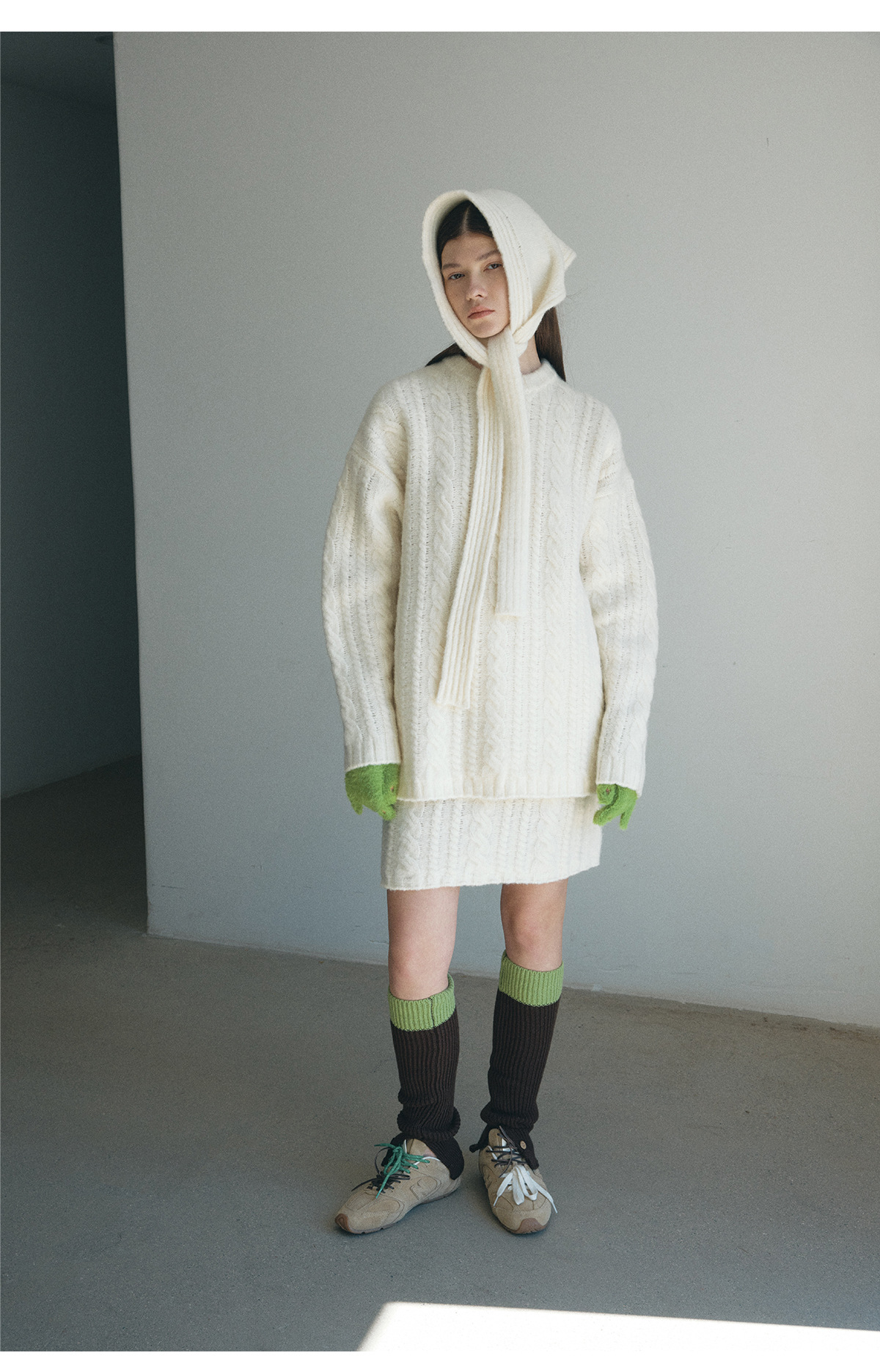 Woherb [Daihe] Winter New Leisure High Waist Wool Thick Needle Simple Joker Twisted Flower Five Half Skirt H7886-Outfit Ideas