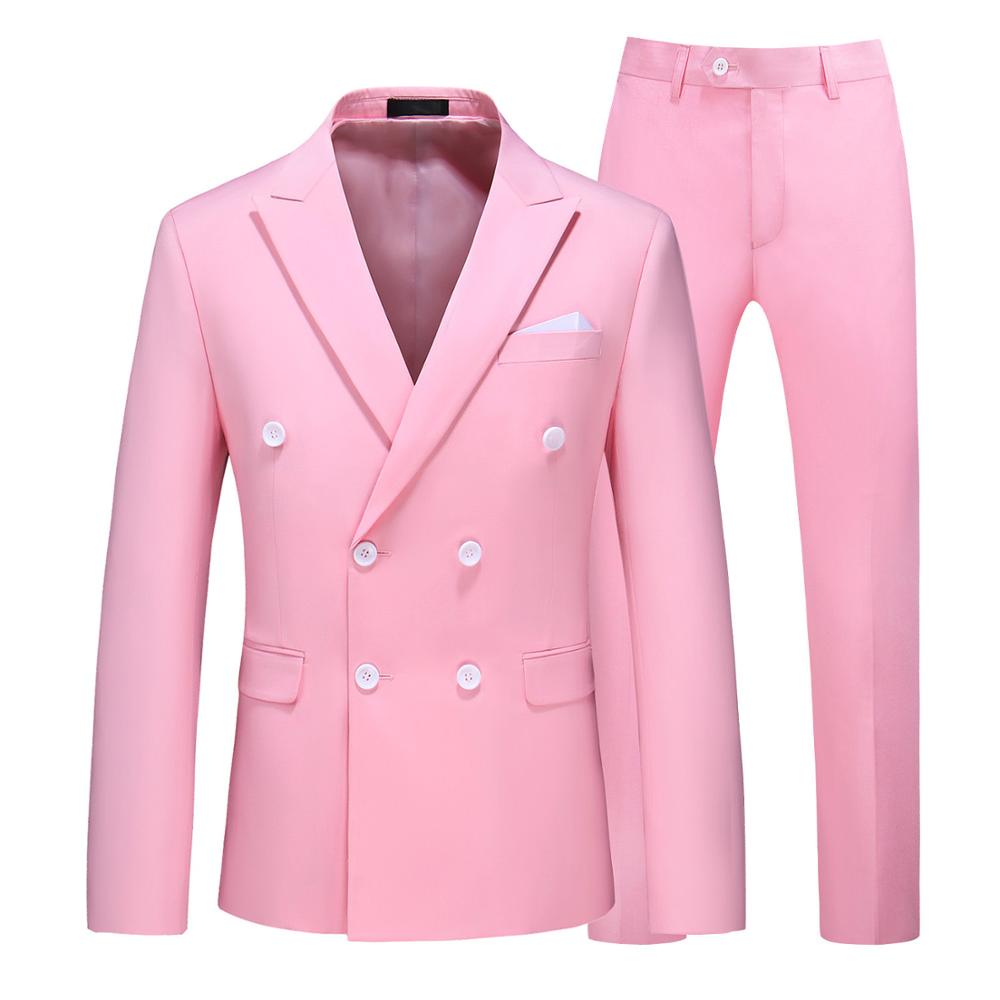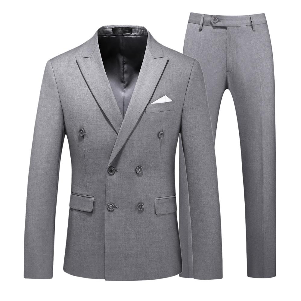 Woherb Double Breasted Tuxedo Suit Men Business Work Wedding Formal Sets Solid Suit Jacket with Pant Slim Fit Korean Casual Clothing