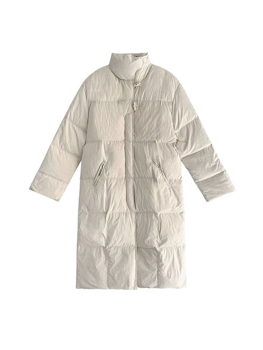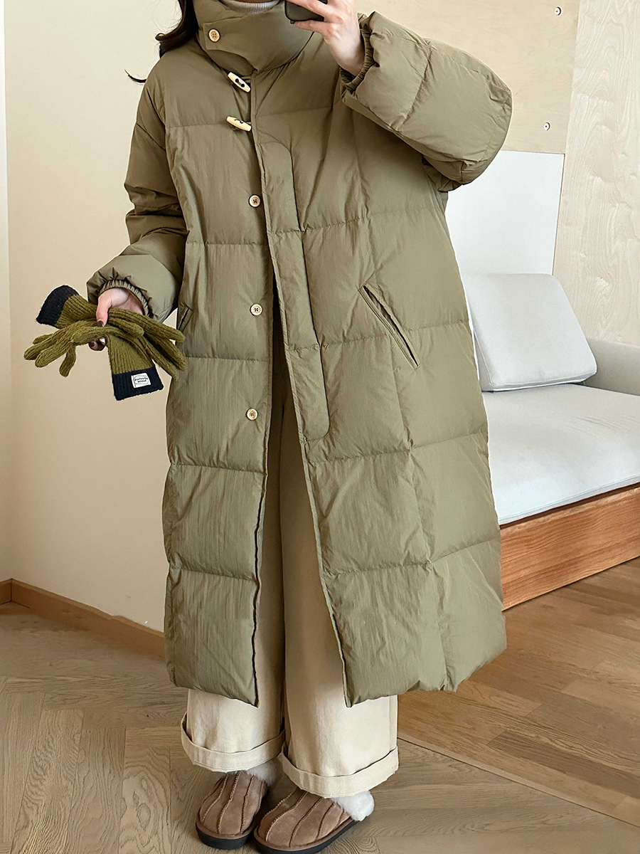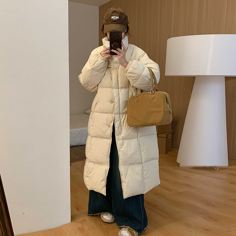 Woherb East Gate Korean Horn Buckle Long Down Jacket Female 2024 Winter Temperament Over The Knee And Thick White Duck Velvet Coat Tide-Outfit Ideas