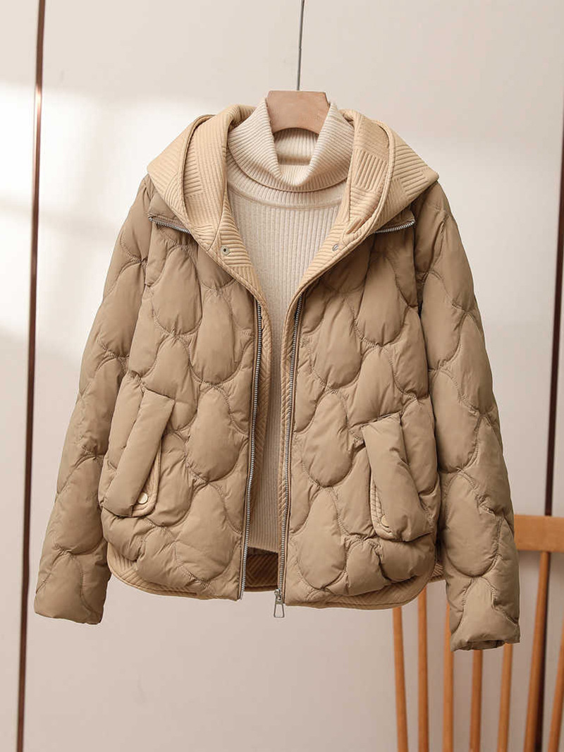 Woherb Fake Two Knitted Splicing Down Jacket Female 2024 Winter New Korean Version Fashion High-End Hooded White Duck Down Coat-Outfit Ideas