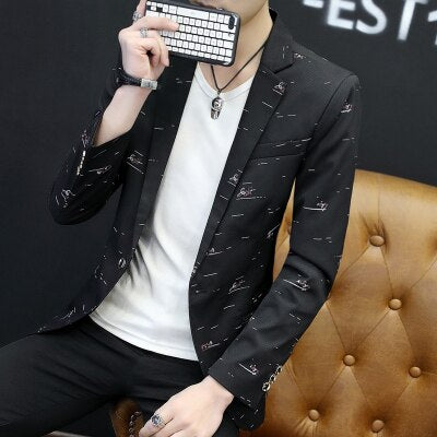 Woherb Floral Print Blazer Jacket Men Korean Trend Streetwear Mens Clothing Casual Suit Coat Male Slim Fit blazer masculino