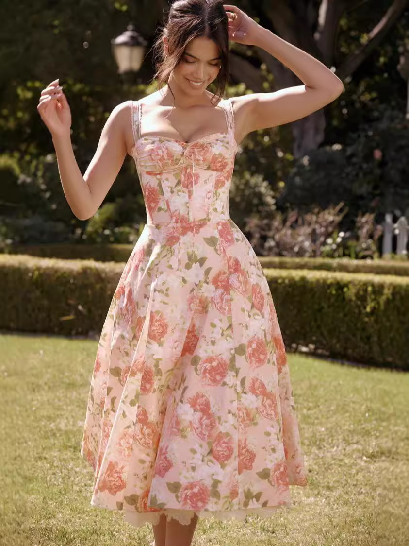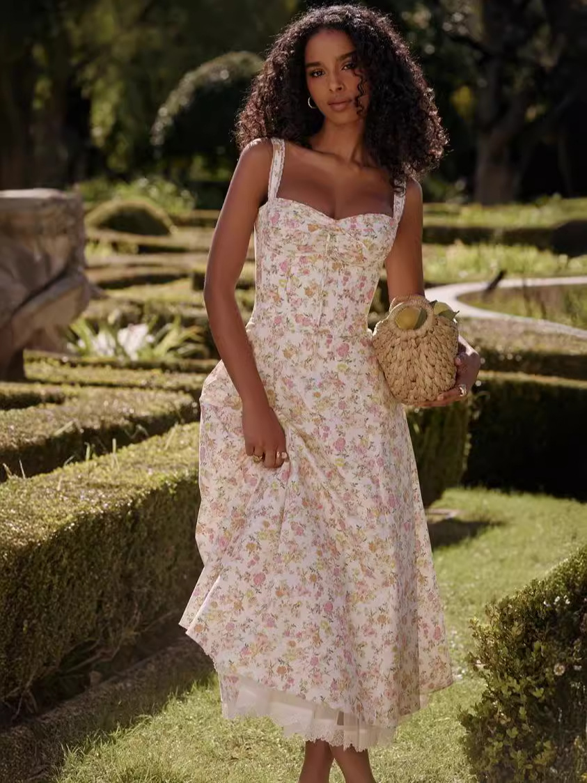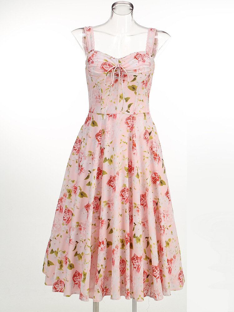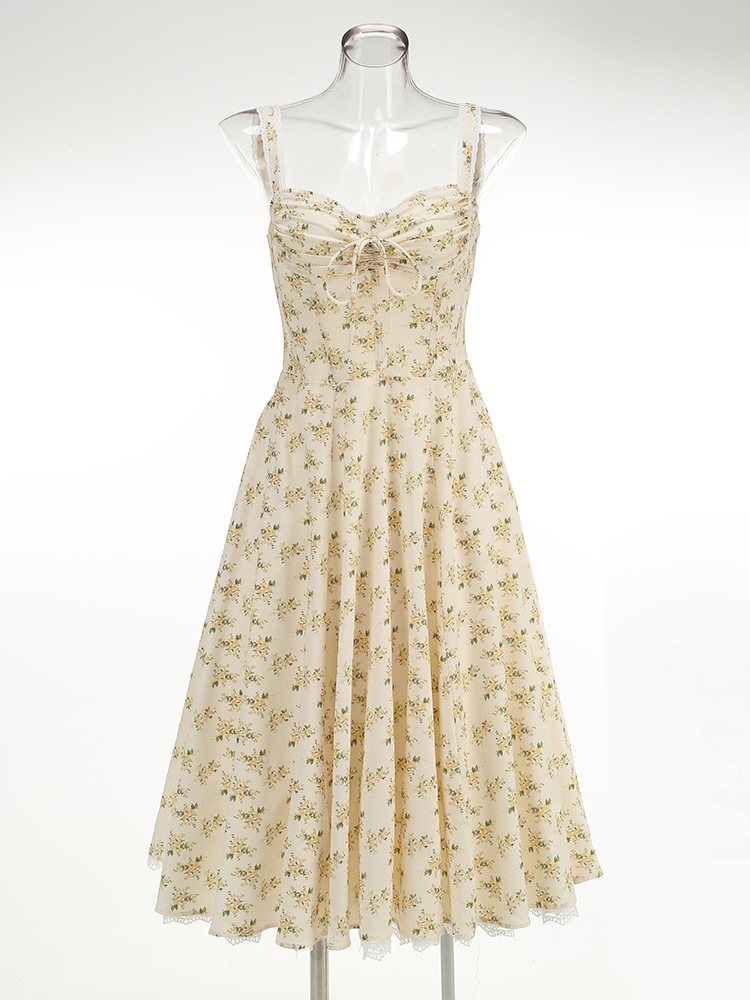 Woherb Hot Sale Of New Sexy Slings Print Dress Mid-Length Dress High-End Temperament Thin Tie Dress Dress Dress Dress