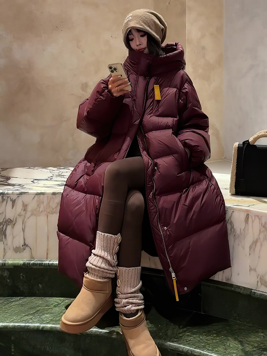 Woherb Korean Version Of Big Quilt Down Jacket Female Long Style 2024 Winter New Thickened Ribbon Hood Extremely Cold Warm Coat Plus Size-Outfit Ideas