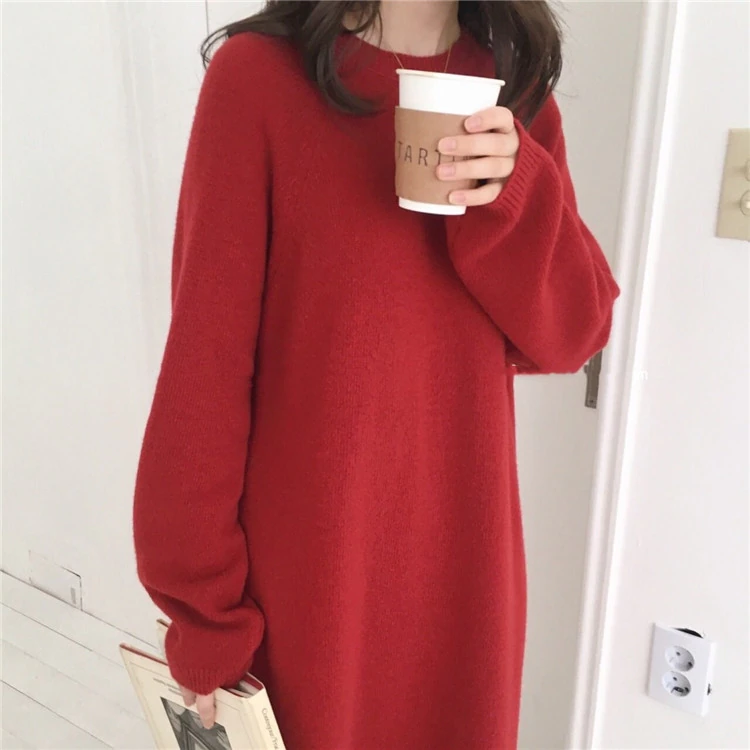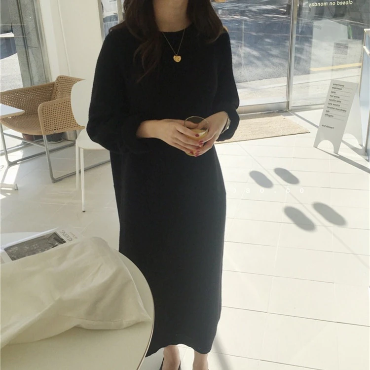 Woherb New 2020 Women's Autumn Winter Dresses Vintage Korean Style Knitting Elegant Oversized Pure Lady Long Dress DR1124