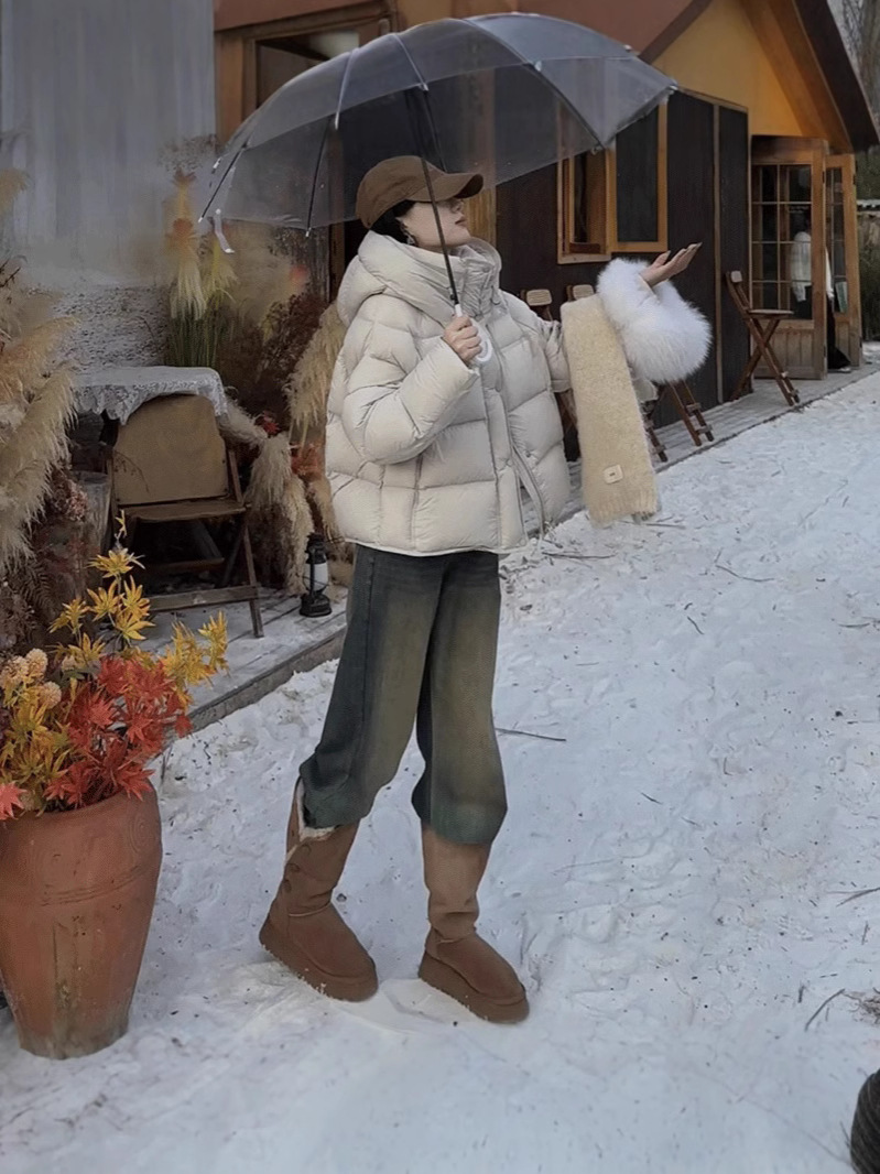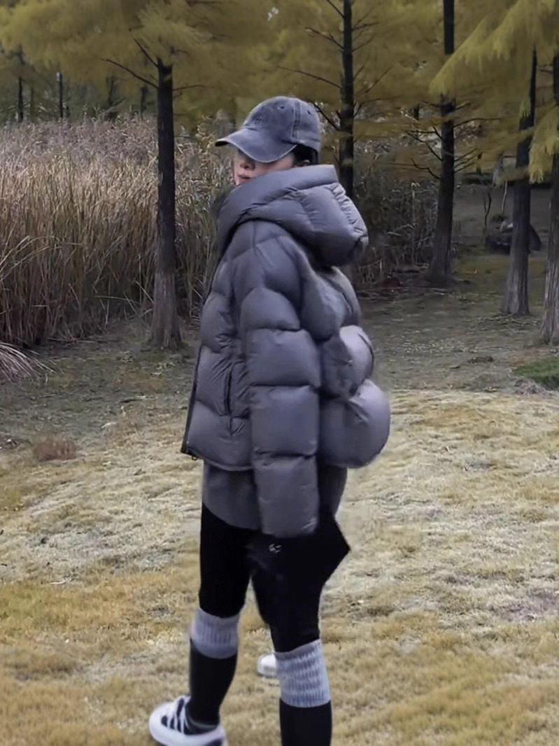 Woherb Puff Soft Glutinous Hooded Short Down Jacket Women's Winter New Thick Small Turtle Back Ken Bean Bread Coat-Outfit Ideas