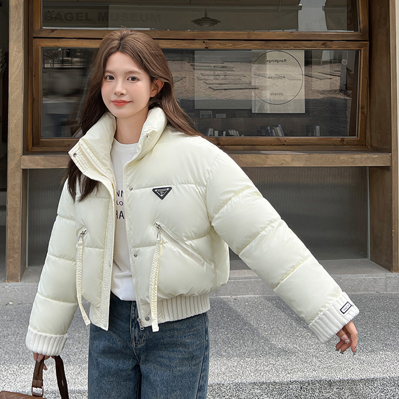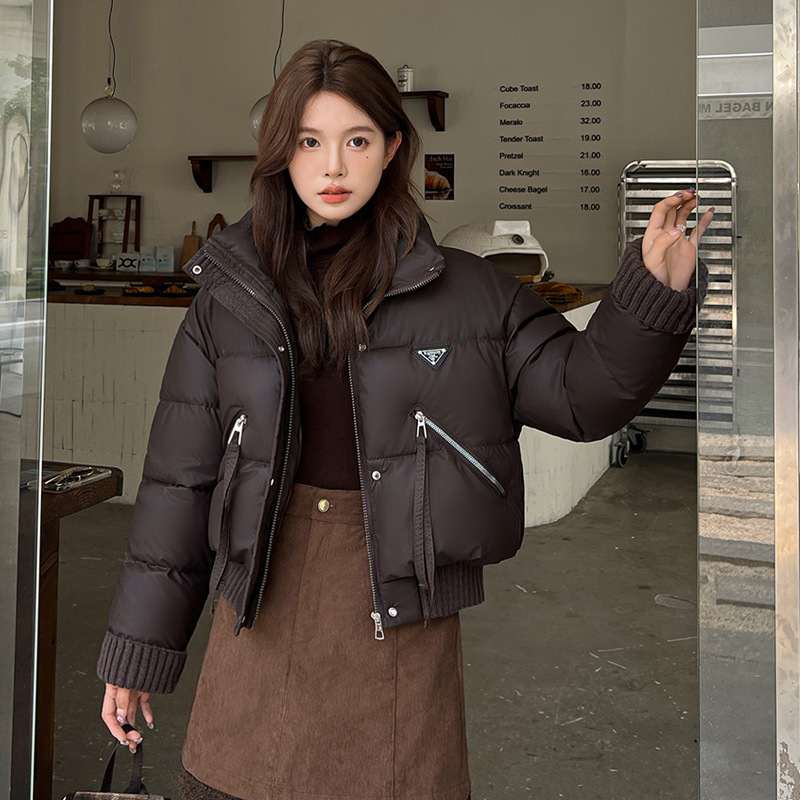 Woherb Short Cotton-Padded Clothes Female 2024 Winter New Korean Version Of Vertical Collar Leisure Down Cotton-Padded Clothes Splicing Loose Add Thick Coat Tide-Outfit Ideas