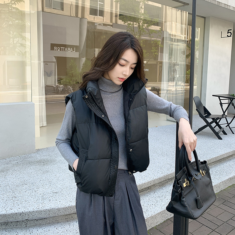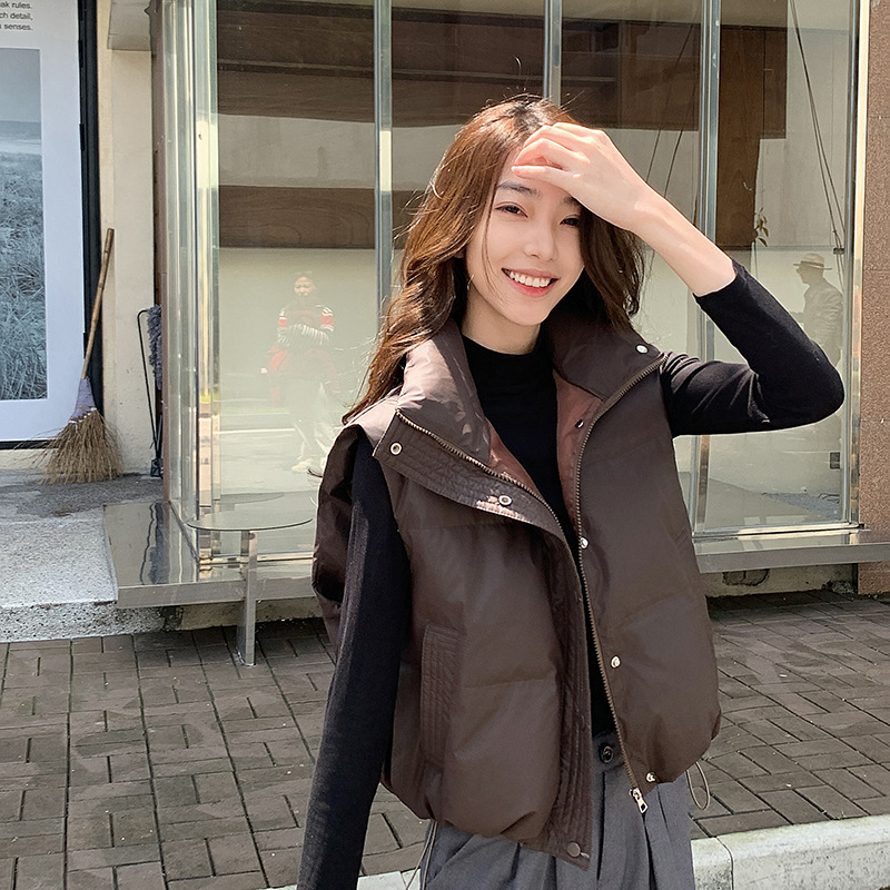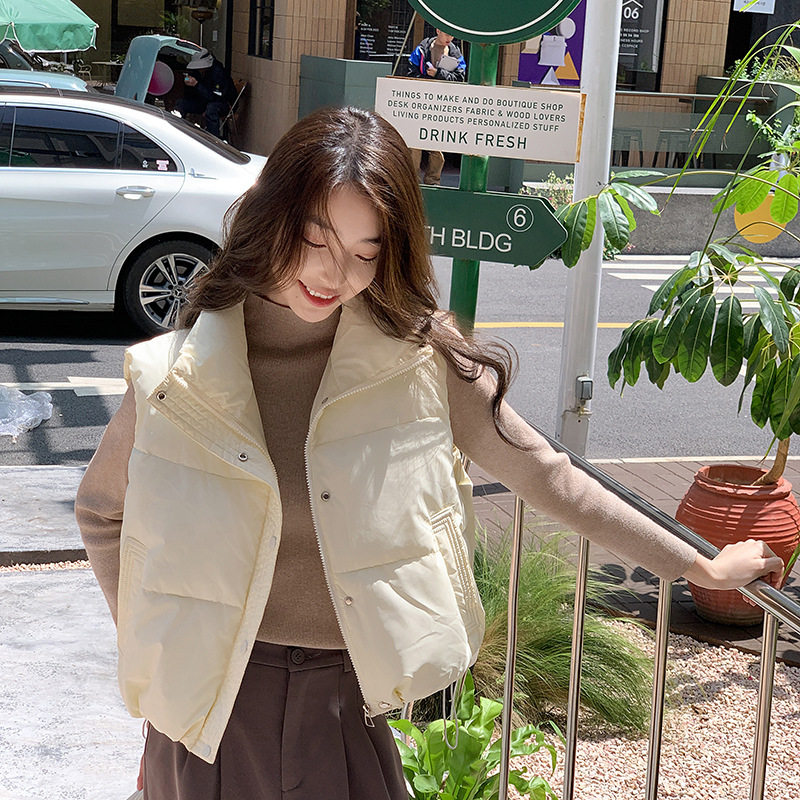 Woherb Short Cotton-Padded Jacket Vest Female Senior Sense Winter College Wind 2024 New Short Fried Street Collar Vest Thick Coat-Outfit Ideas