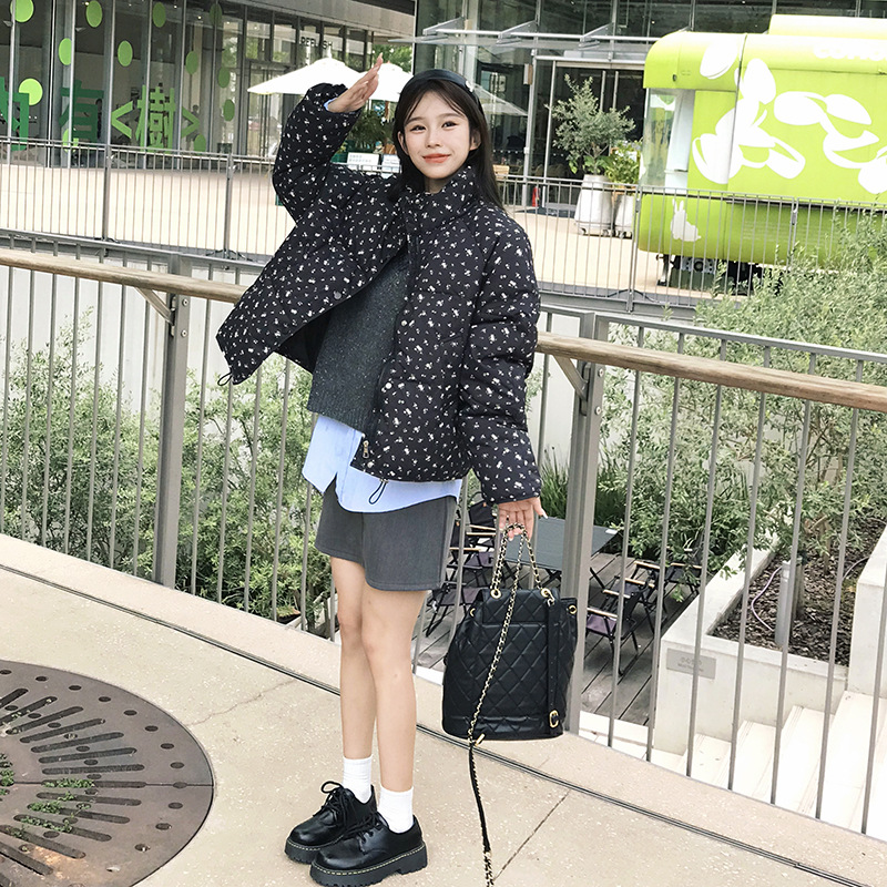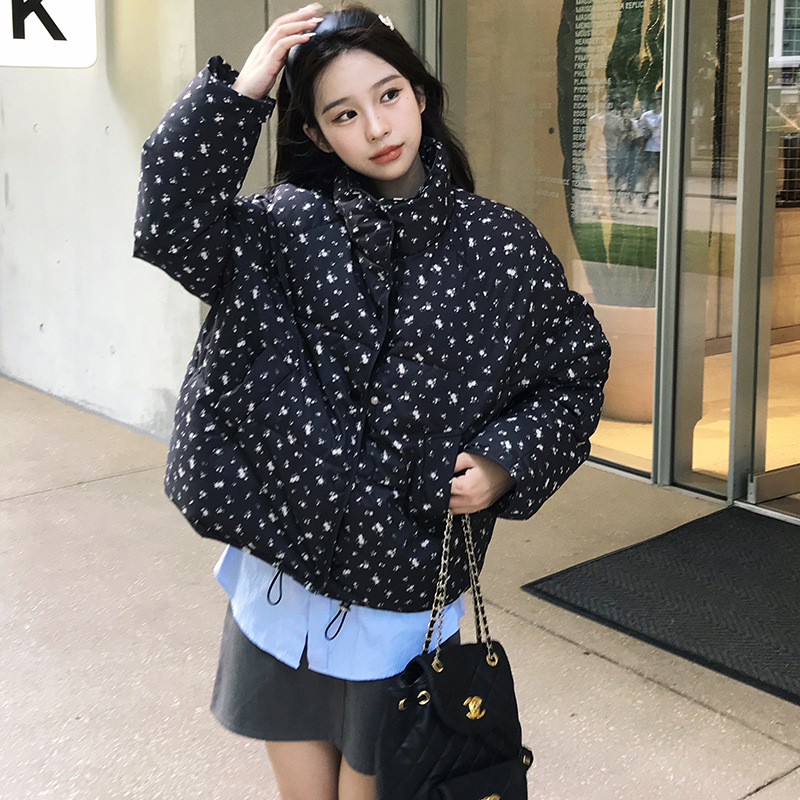 Woherb Small Flower Stand Collar Short Down Cotton Jacket 2024 New Small Bread Jacket Female Winter Korean Cotton-Padded Jacket-Outfit Ideas