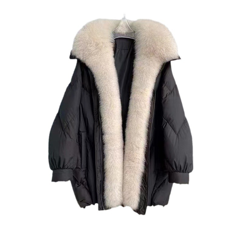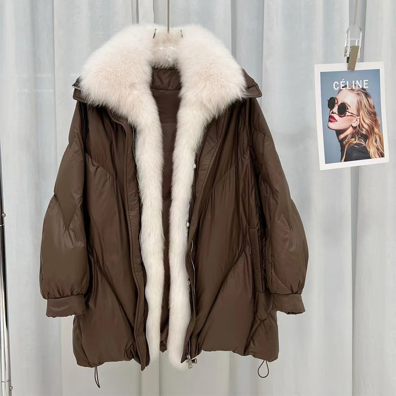 Woherb The New Winter 2024 Oversized Fox Fur Collar Loose Versatile Goose Down Female Long Style To Overcome The Coat Tide-Outfit Ideas