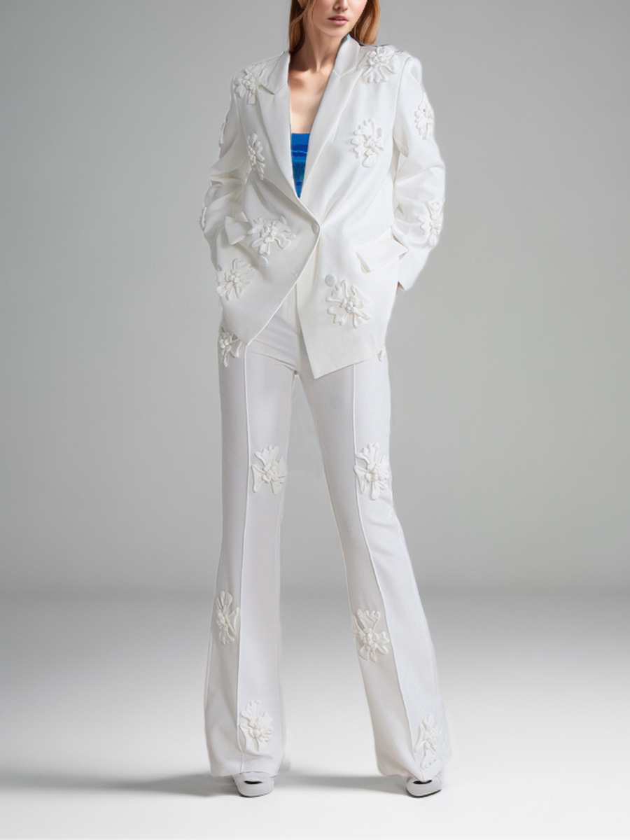 Woherb Woherb 2024 New Fashion Temperament Commuter Suit Collar Jacket Pants Three-Dimensional Flower Suit Female-Outfit Ideas