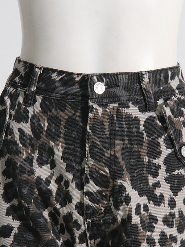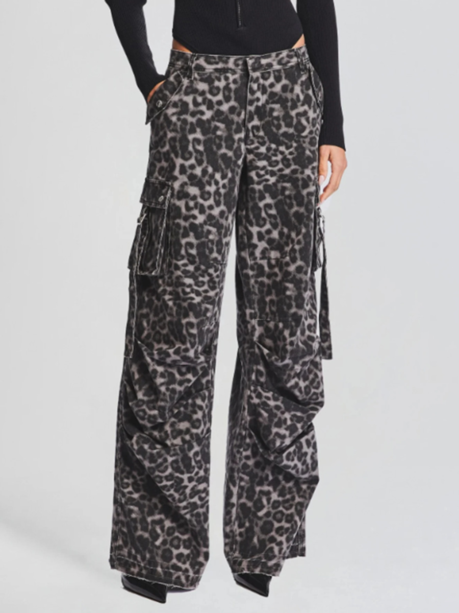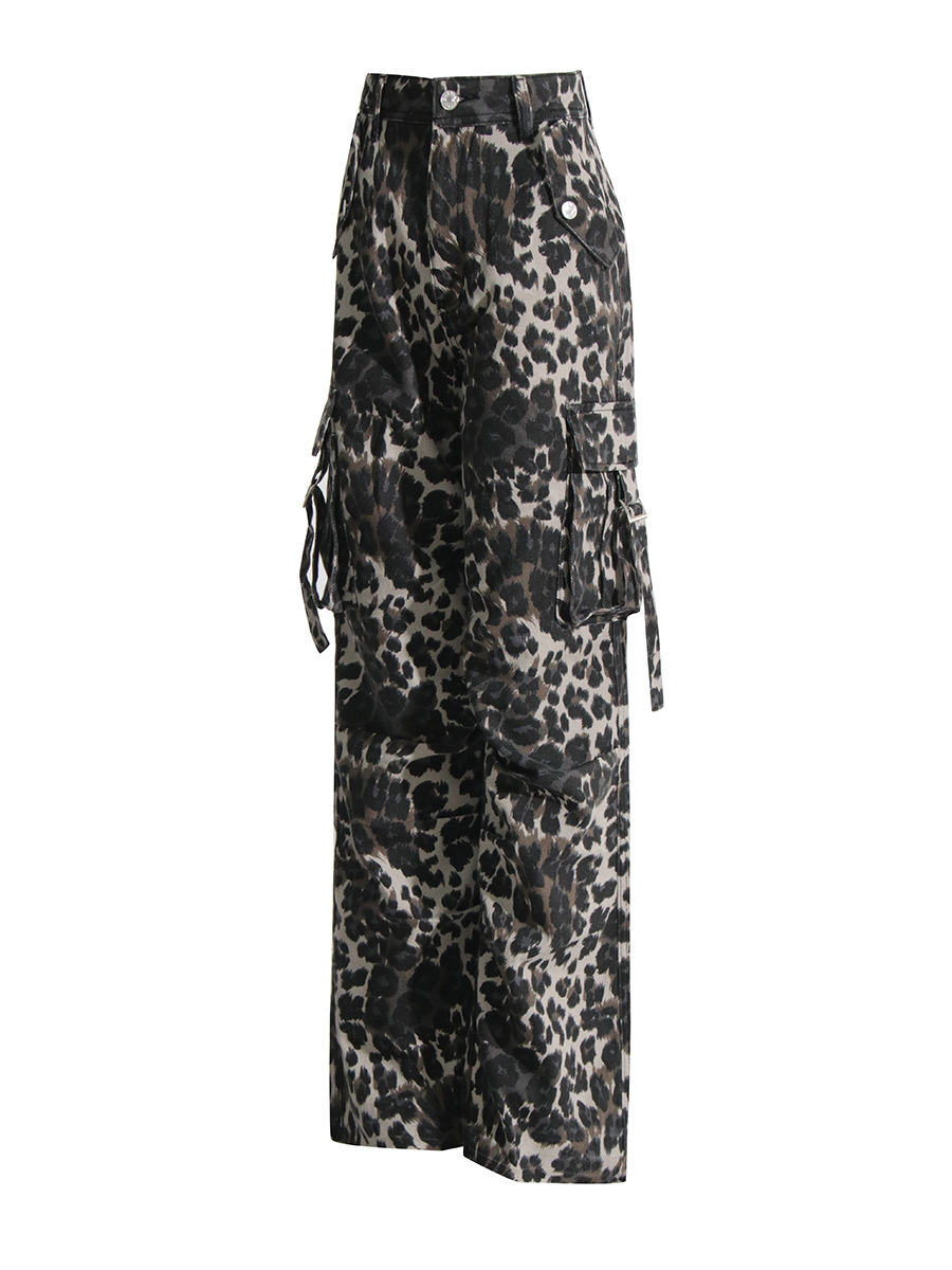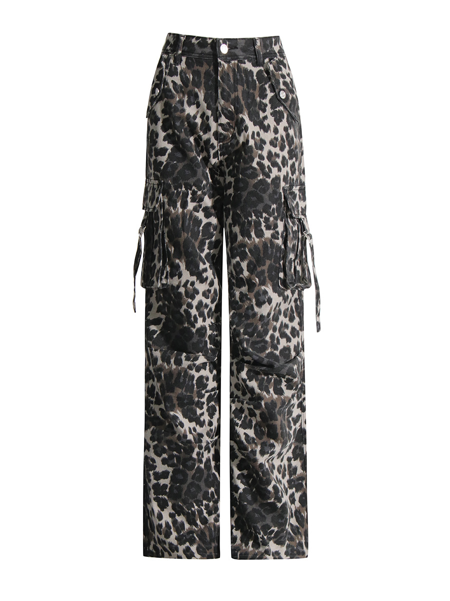 Woherb Woherb And Summer 2024 New Leopard Print Multi-Pocket Decorative Design Feel Tooling Denim Casual Pants Women-Outfit Ideas