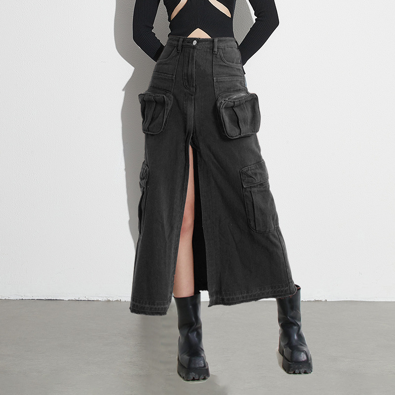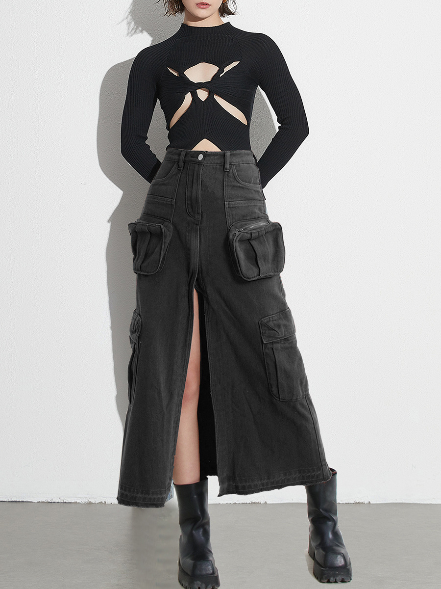 Woherb Woherb Skirt Female 2024 Autumn New Ins Wind High Waist Show Thin A-Word Skirt Niche Design Sense Edge Fishtail Skirt-Outfit Ideas